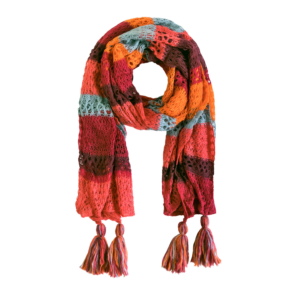 Apportez style et confort à vos tenues avec cette écharpe rayée en laine ajourée. Ses couleurs harmonieuses dans les tons de prune, orange, rose et gris en font un accessoire tendance, facile à associer au quotidien. Légère mais chaude, elle est idéale pour la mi-saison comme pour l’hiver.