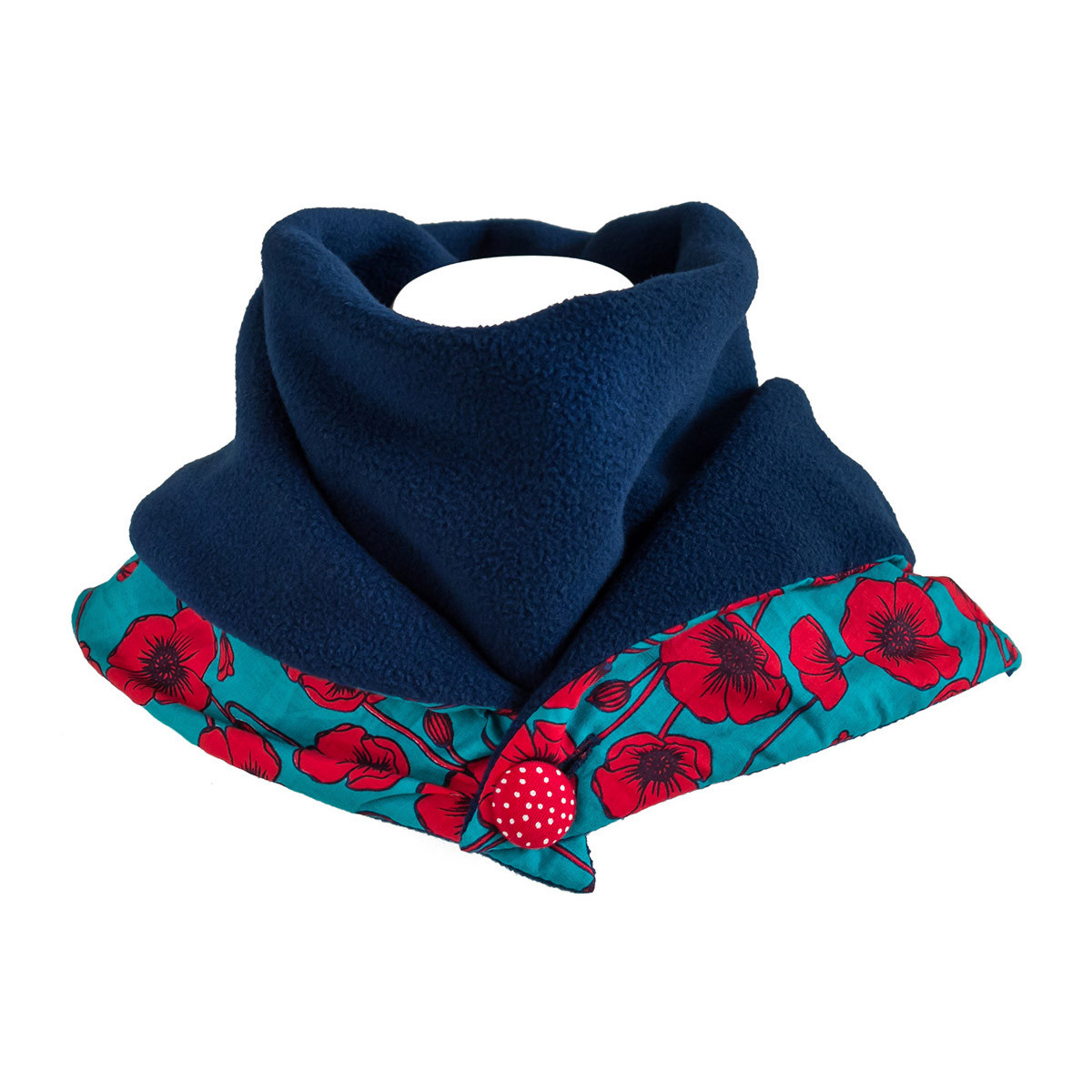 Echarpe col en polaire et tissu original et coloré toute douce, elle se ferme grâce à un joli bouton en tissu. Ses dimensions généreuses vous tiendront chaud tout l'hiver. Allier style et confort avec ce tour de cou pour femme.