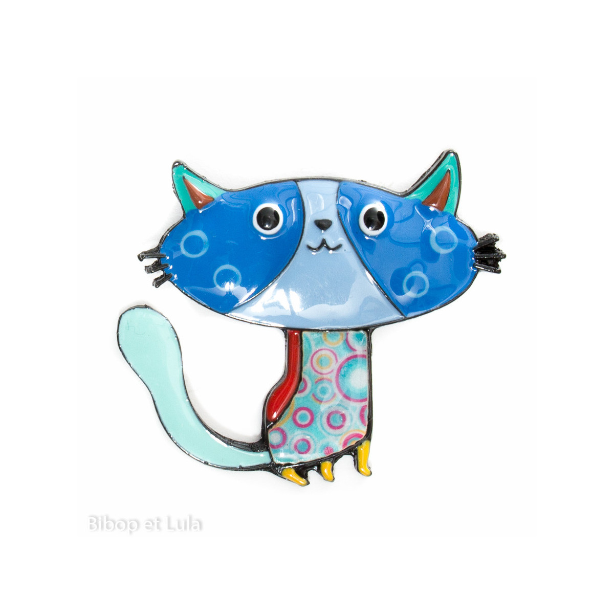 Cette jolie broche émaillée, chat bleu, (dos émaillé noir), égayera vos vestes et gilets .