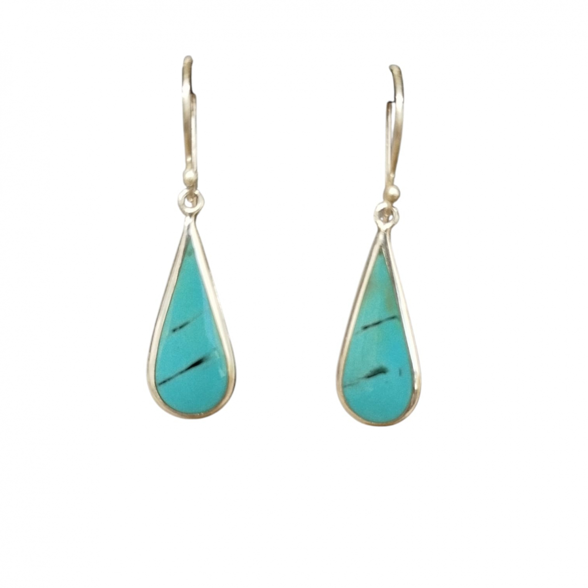 Boucles d'oreilles pendantes argent Gouttes turquoise