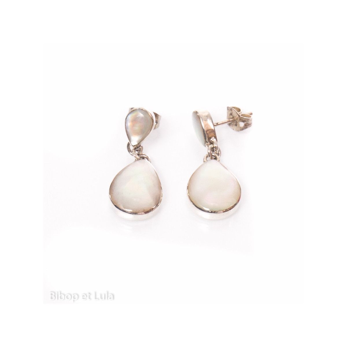 Boucles d'oreilles clous petites gouttes Nacre