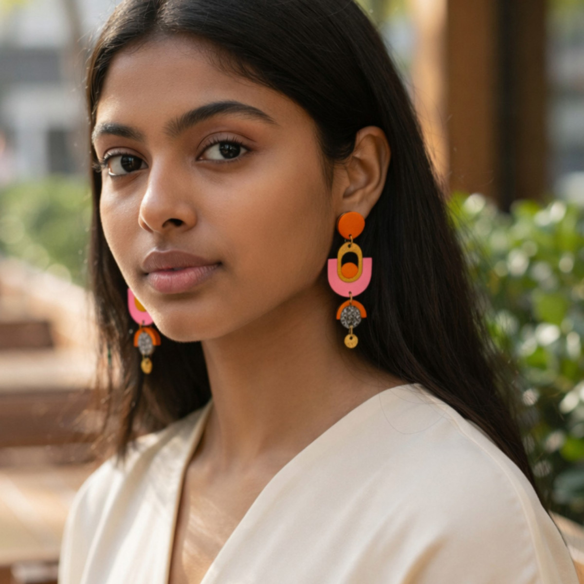 Ultra lumineuses et résolument modernes, les boucles d’oreilles Psyché orange & rose sont faites pour celles qui aiment la couleur. Le duo rose/orange apporte une énergie solaire et flatte le visage, tandis que le contour doré et la partie pailletée donne une touche chic et sophistiquée.