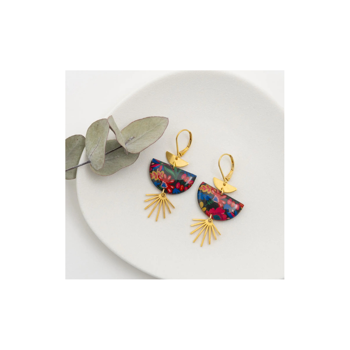 Perle de résine epoxy apportant finesse, brillance et légèreté. Motif papier résiné des deux côté ( dos uni ivoire).