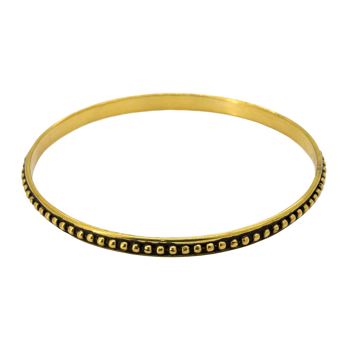 Minimaliste et raffiné, ce bracelet jonc fin en laiton doré séduit par son design discret et son motif de petites perles en relief.