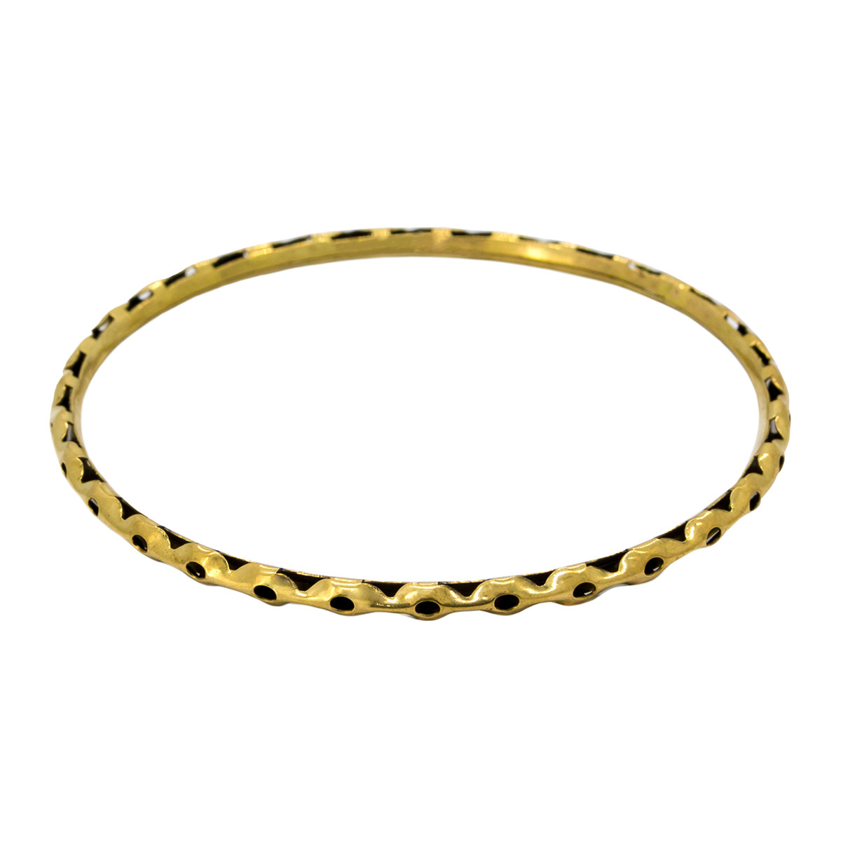 Laissez-vous séduire par l’originalité de ce bracelet jonc en laiton doré, travaillé avec un effet martelé et ajouré qui lui confère un style unique.