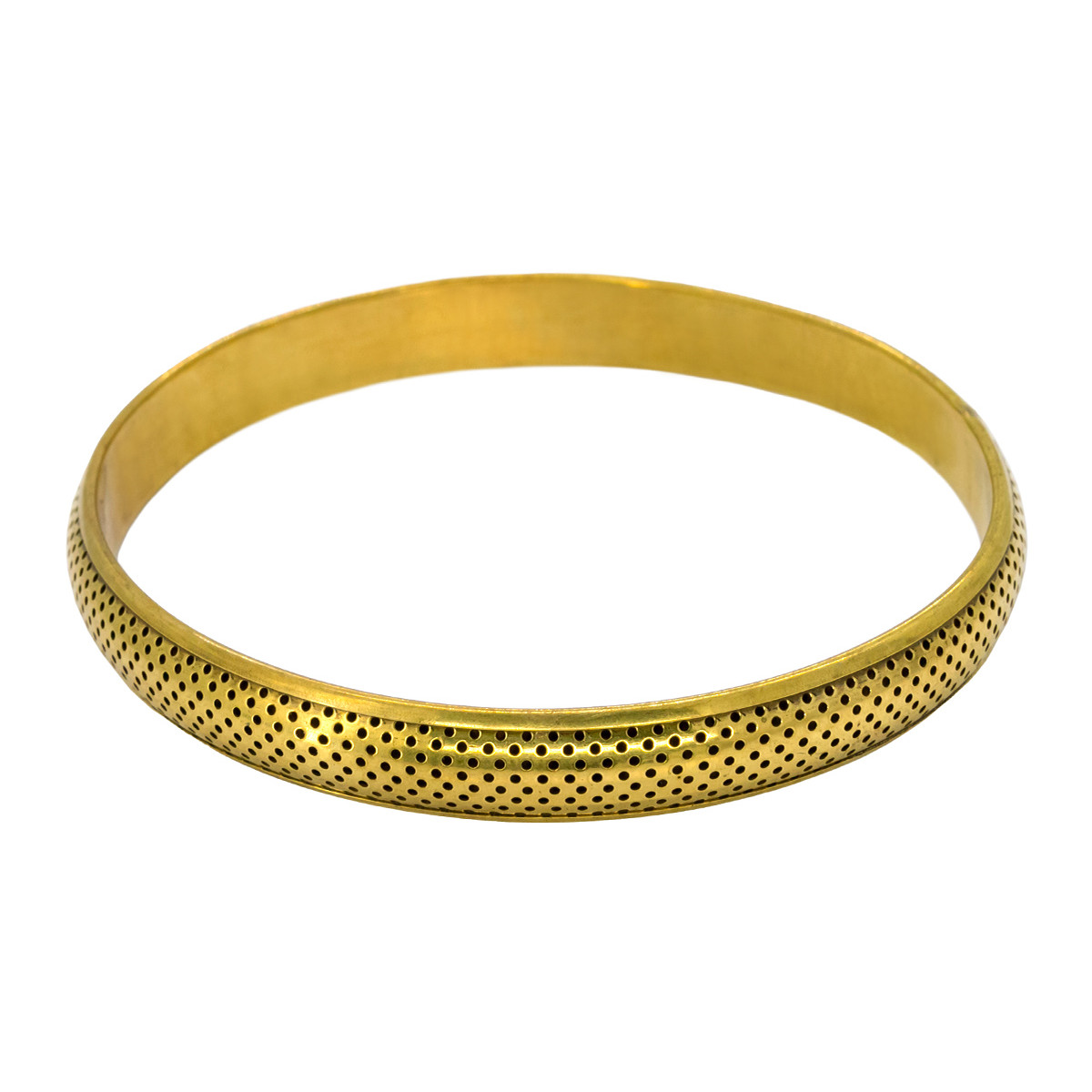 Optez pour l’élégance moderne avec ce bracelet jonc en laiton doré, embelli d’un motif perforé régulier qui lui donne un style unique et raffiné.
