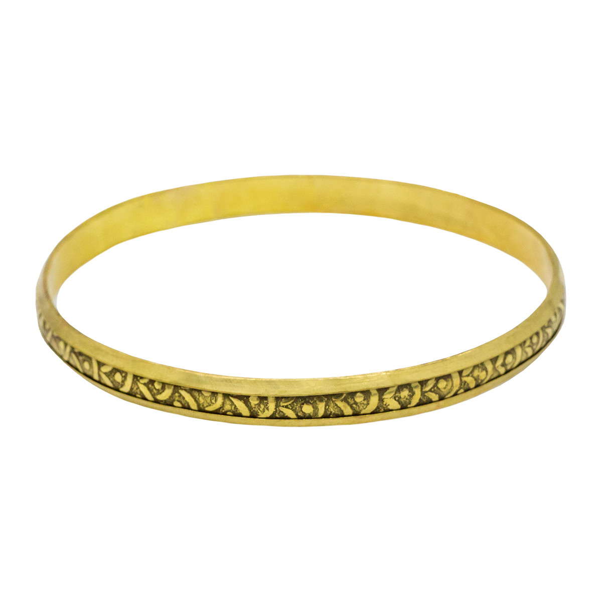 Optez pour l’élégance moderne avec ce bracelet jonc en laiton doré, embelli d’un motif arabesque qui lui donne un style unique et raffiné.