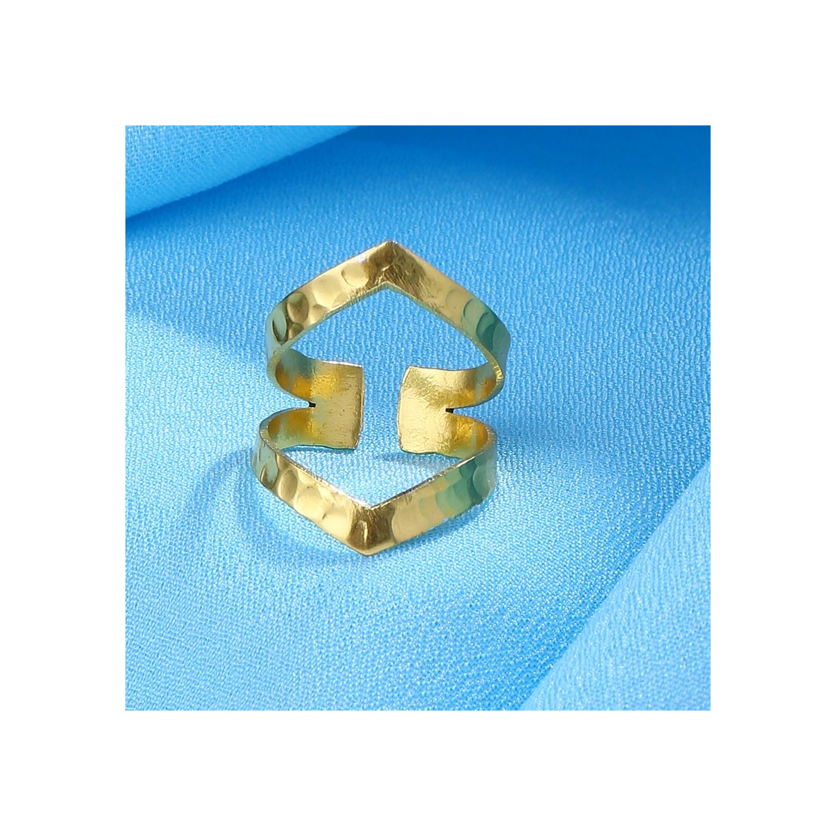 Sublimez votre style avec cette bague double et ajustable en laiton martelé doré.