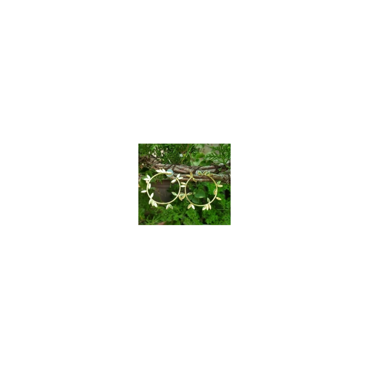 Jolis clous d'oreilles en laiton motif feuilles sur tige circulaire.