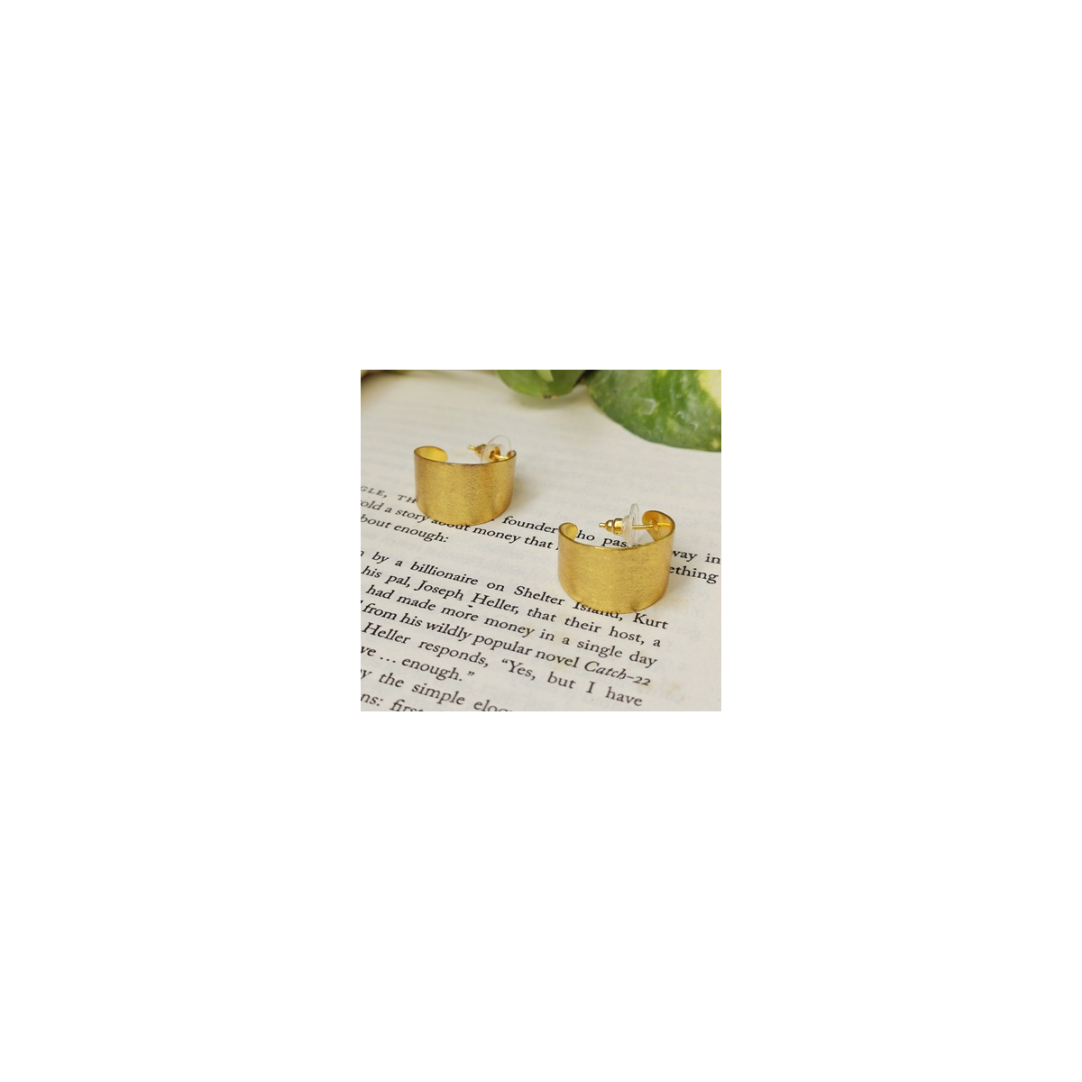 Jolies boucles d'oreilles clous en laiton, façon anneau large et arrondi non fermé, aspect brossé .