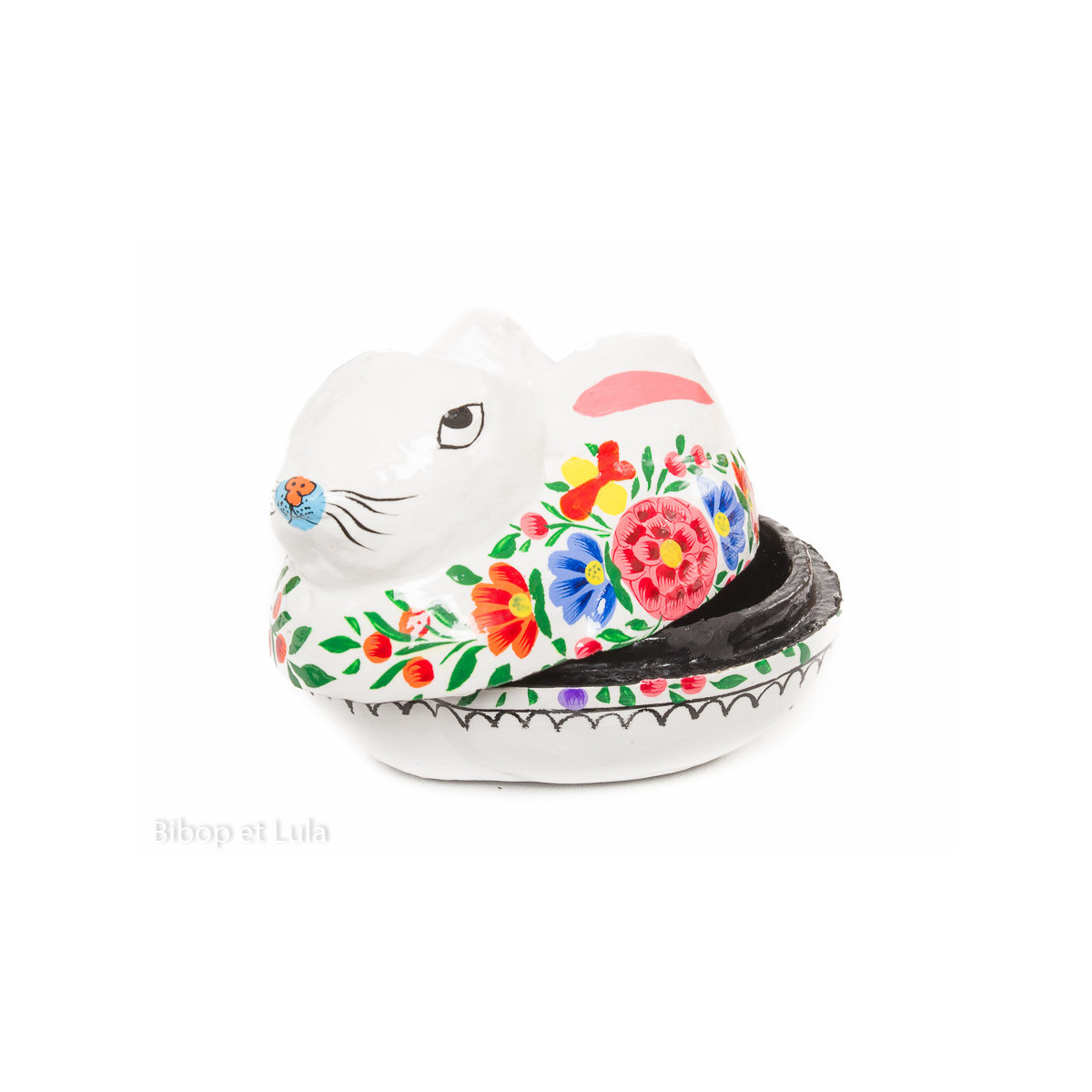 Petite boite peinte à la main Lapin blanc fleurie
