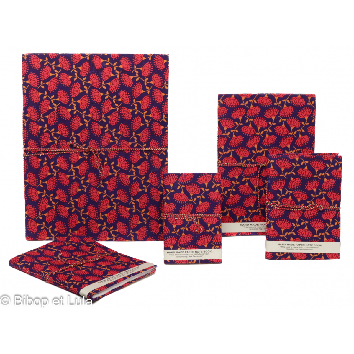 Découvrez notre carnet de voyage, 100% fait main en Inde, avec une couverture en tissu au motif floral.