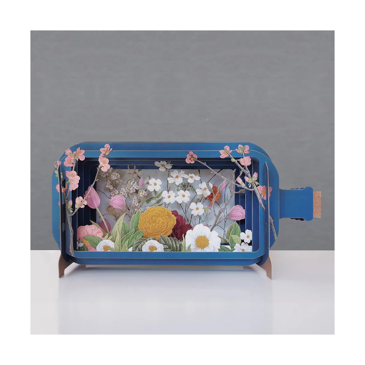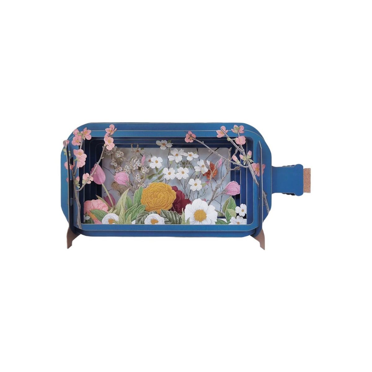 Découvrez la beauté florale éternelle avec notre carte 3D Pop Up "Message dans une Bouteille - Fleurs". Cette création exquise est une explosion de couleurs, remplissant la bouteille de fleurs délicates aux teintes vibrantes de rose, blanc, jaune, rouge et vert.