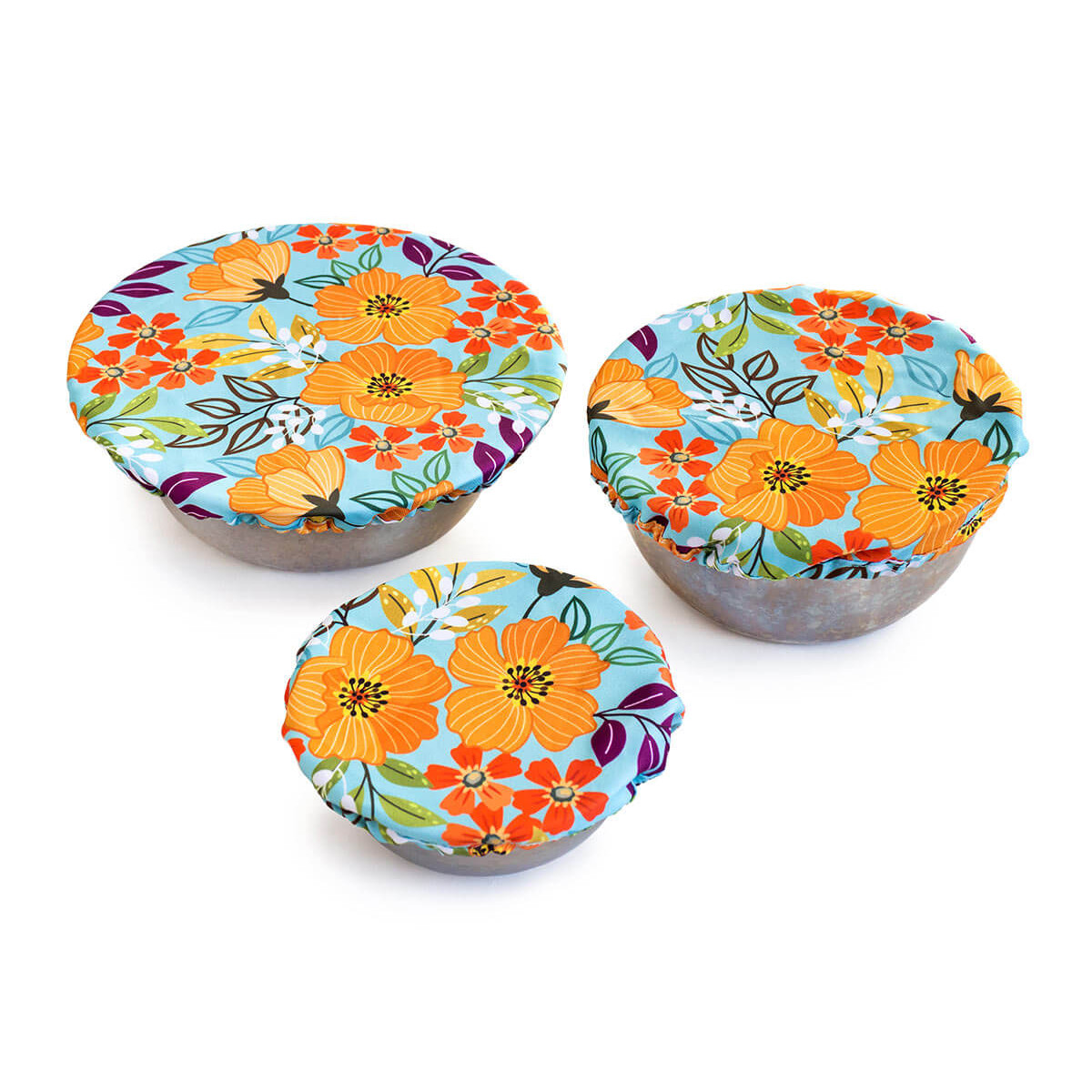 Fini les films plastiques, avec nos jolies charlottes alimentaires zéro déchets en tissu synthétique imprimé .