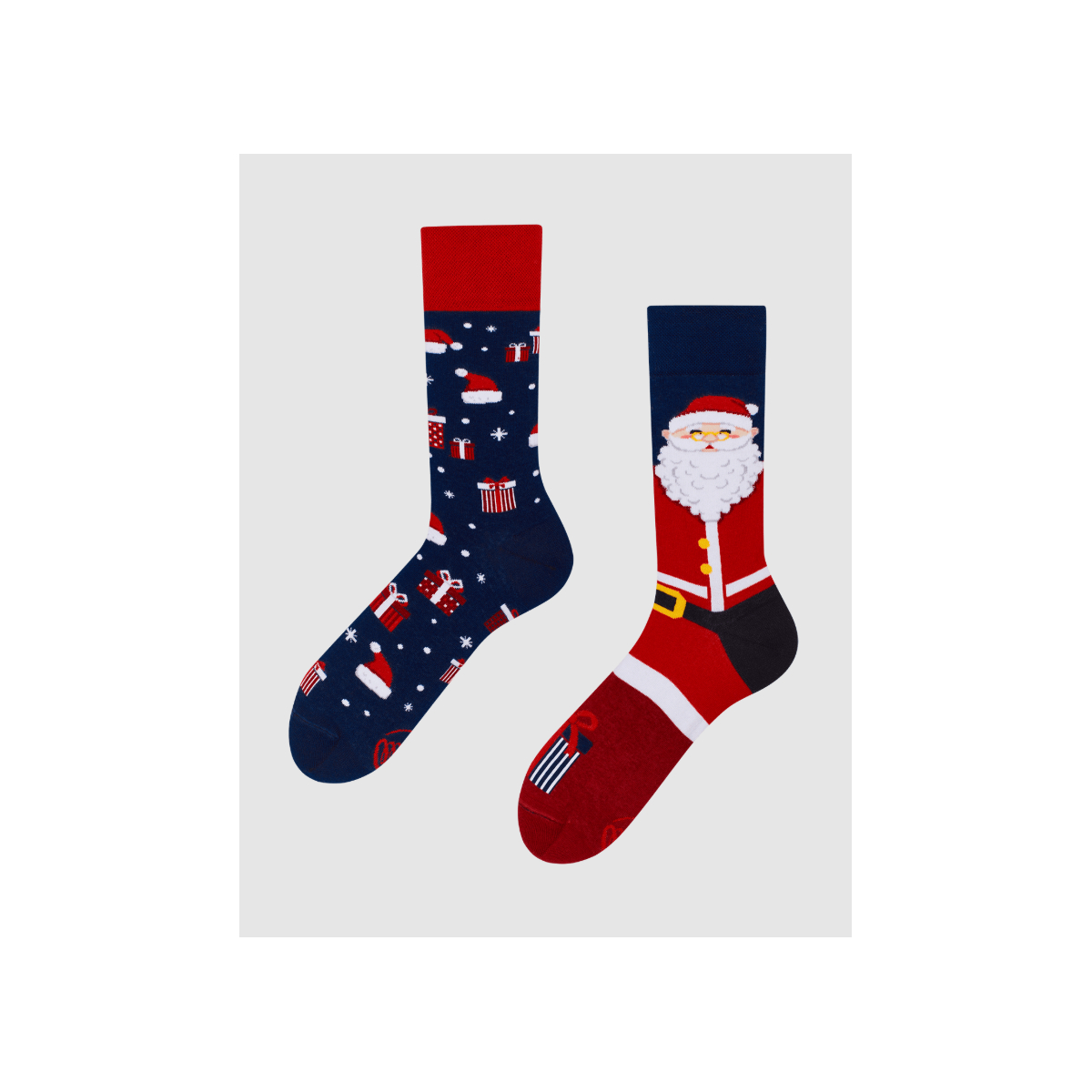 Exprimez votre style avec les chaussettes dépareillées adulte Santa Claus.  Pourquoi toutes les chaussettes devraient-elles être identiques ? Apportez de la couleur à vos pieds toute l'année avec ces chaussettes uniques aux motifs rigolos sur le thème de Noel .