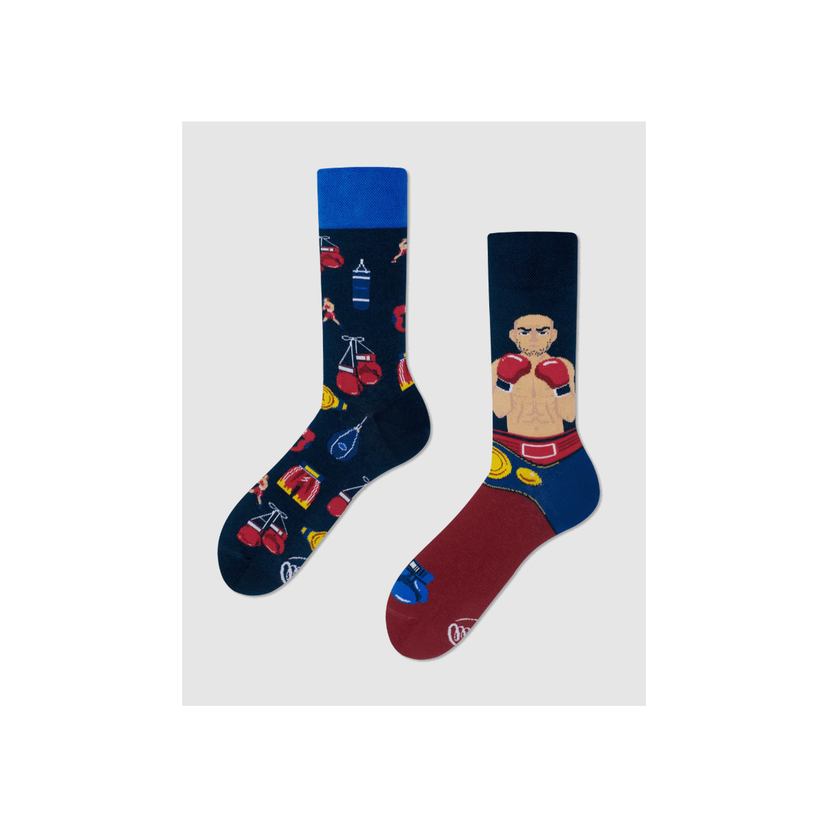 Exprimez votre style avec les chaussettes dépareillées adulte The Boxer.  Pourquoi toutes les chaussettes devraient-elles être identiques ? Apportez de la couleur à vos pieds toute l'année avec ces chaussettes uniques aux motifs rigolos sur le thème de la boxe .