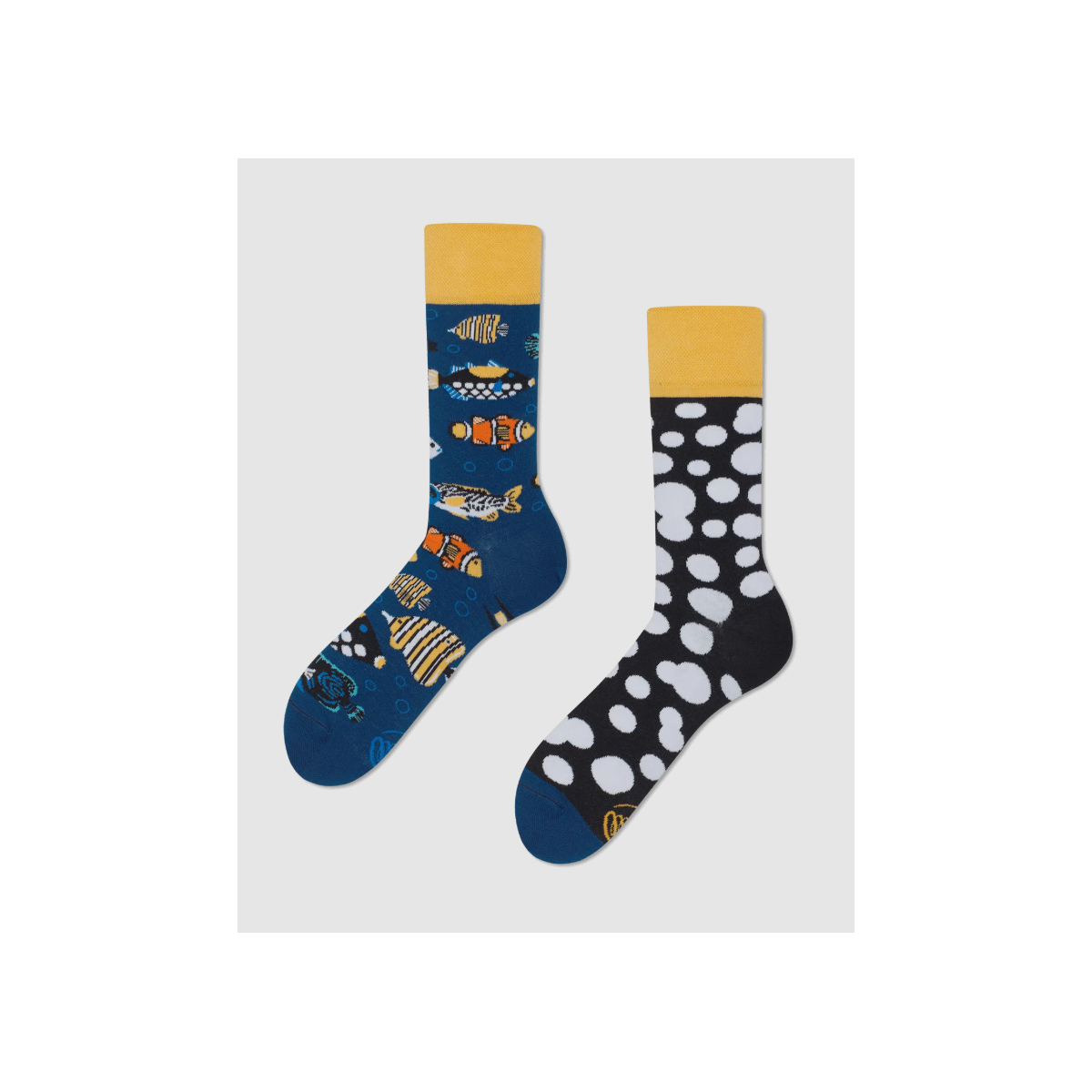 Exprimez votre style avec les chaussettes dépareillées adulte Tropical Fish.  Pourquoi toutes les chaussettes devraient-elles être identiques ? Apportez de la couleur à vos pieds toute l'année avec ces chaussettes uniques aux motifs rigolos sur le thème des poissons tropicaux.