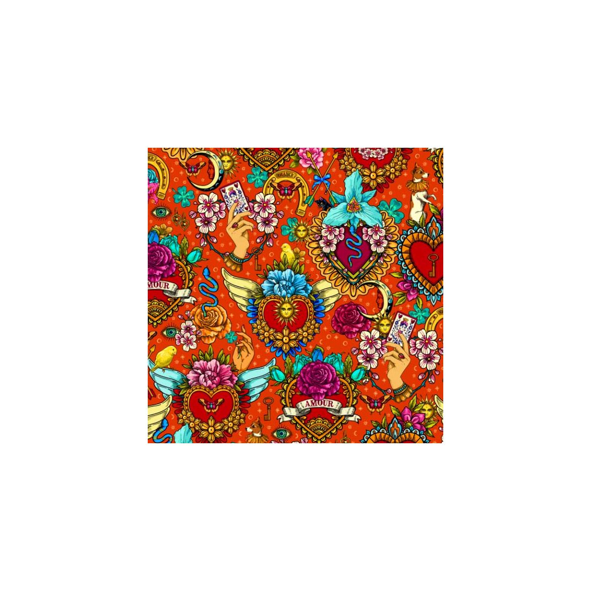 Le style « tatouage rétro » apporte à ce tissu une délicieuse touche vintage et décalée.
