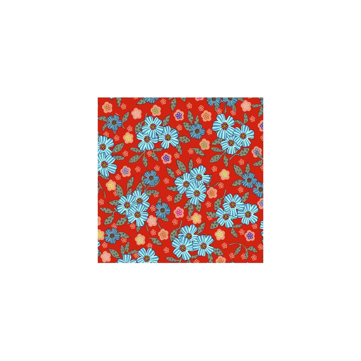 Un semis de fleurettes rayées et de mini bouquets qui crée un tissu joyeux et coloré.