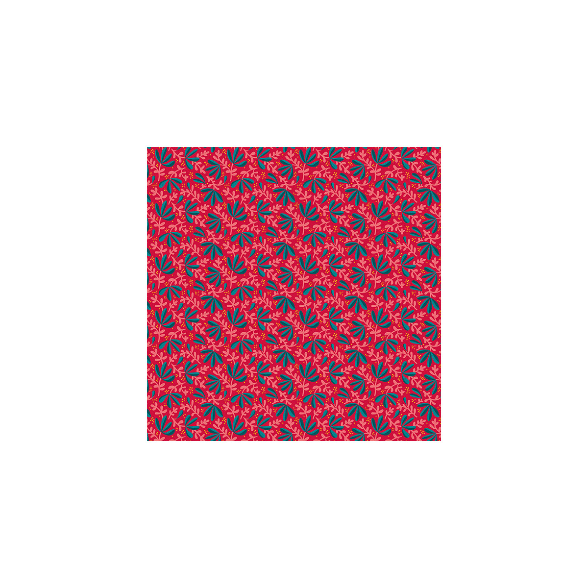 Joli coton rouge parsemé de feuilles turquoise et rose