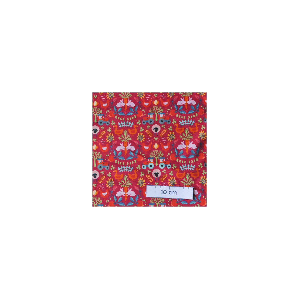 Un univers naïf et folk qui plaira aux petits avec ses motifs de tracteurs, de poules, de lapins ...