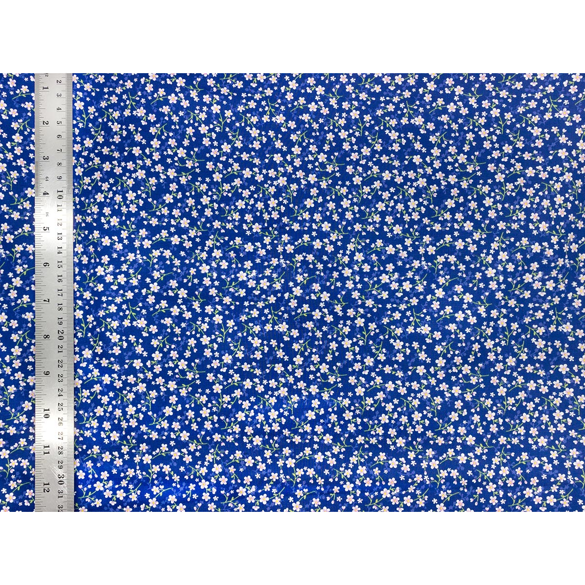 Ajoutez une touche florale à vos créations avec ce coupon de tissu Léonie bleu en coton imprimé d'un motif fleurs blanches sur un fond bleu.