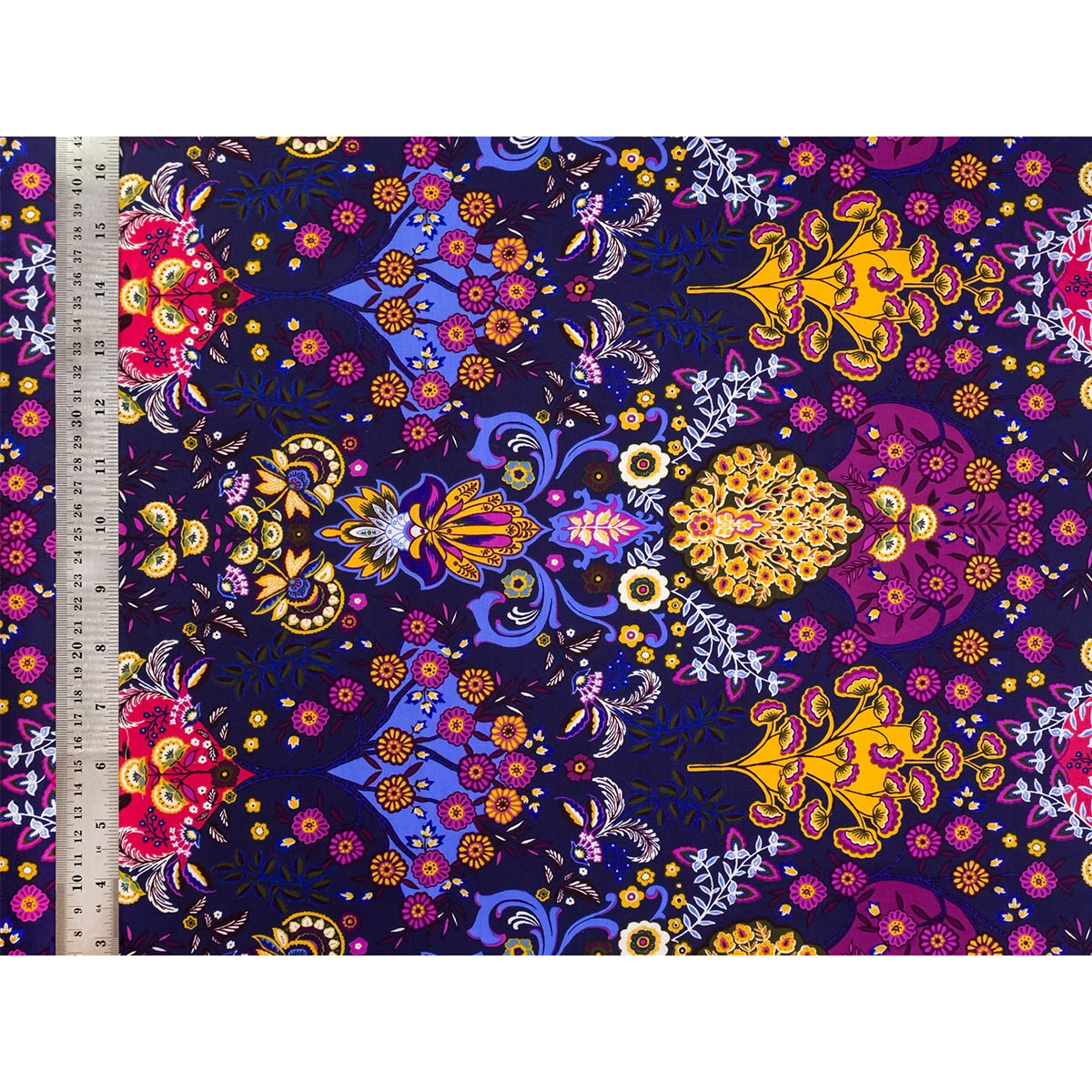 Ajoutez une touche florale à vos créations avec ce coupon de tissu Marigold en coton imprimé d'un motif foisonnant sur un fond bleu nuit.