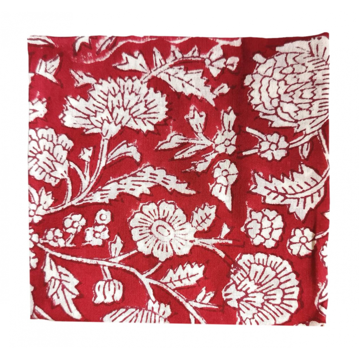 Ajoutez une touche florale à vos créations avec ce coupon de tissu indien block print Arjun , aux motifs de fleurs blanches sur fond rouge
