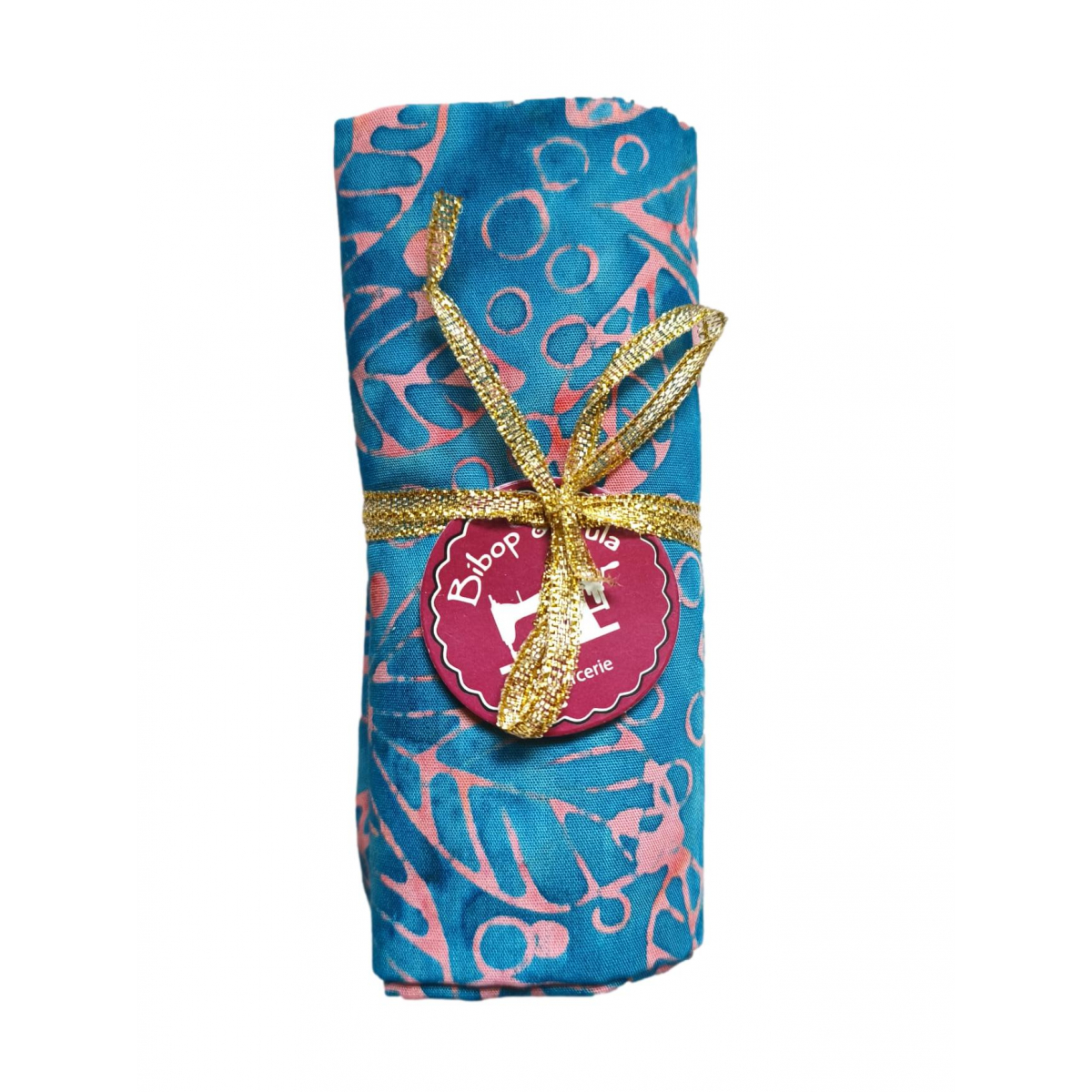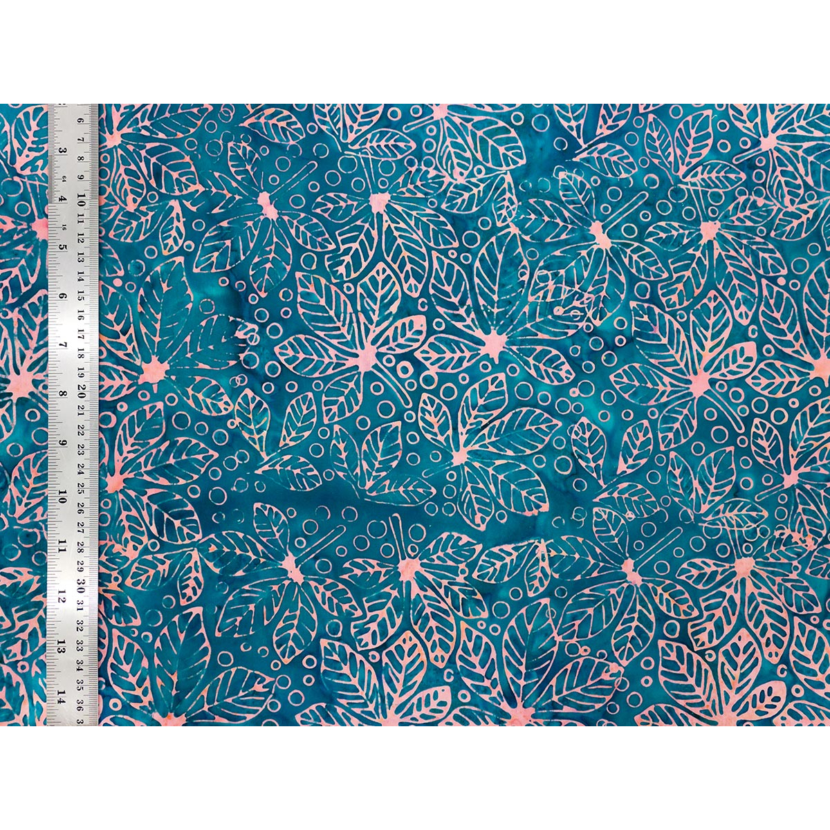 Ajoutez une touche florale à vos créations avec ce coupon de tissu Bulles à coudre en coton batik bleu imprimé feuilles de marronnier rosé