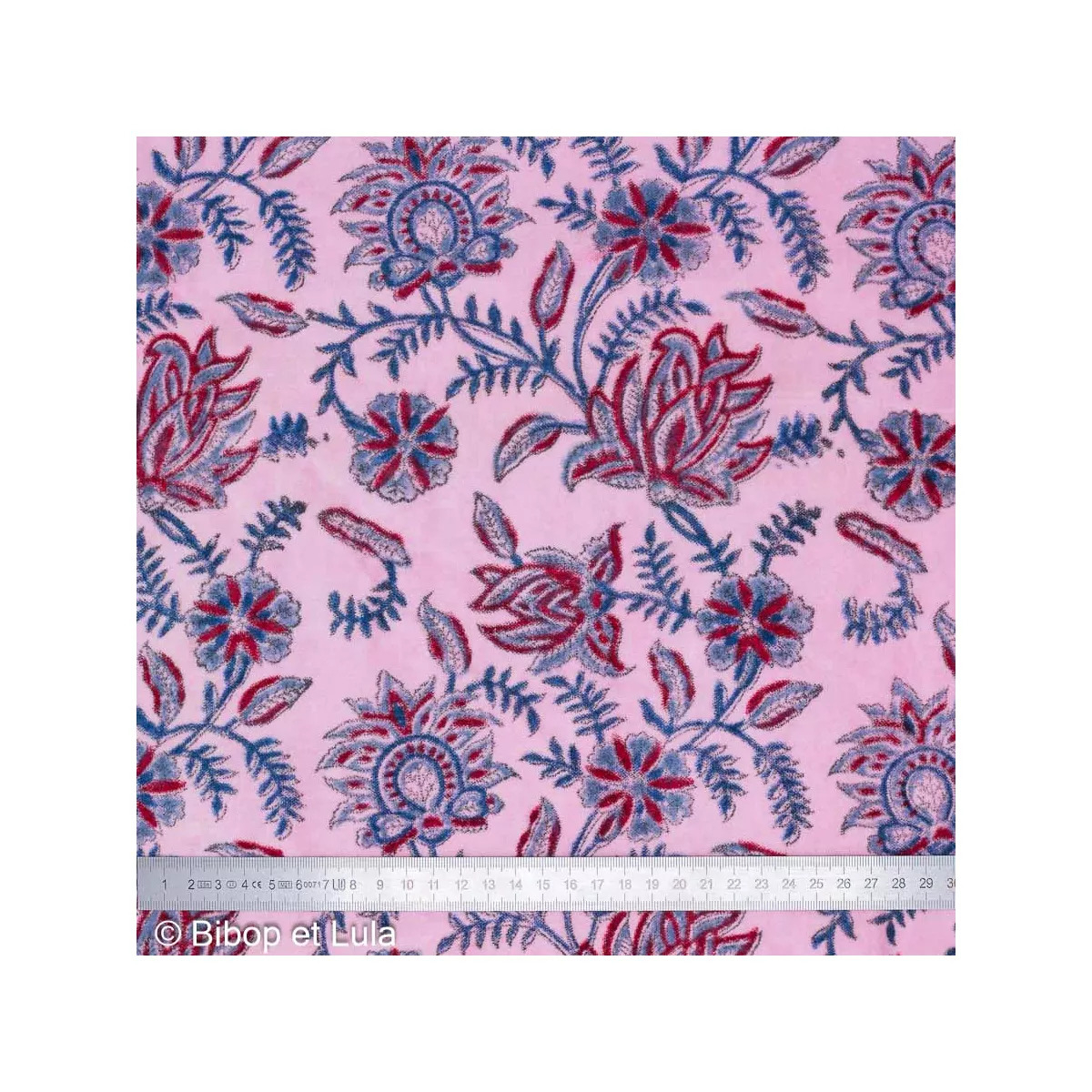 Un fond rose qui fait ressortir un joli motif floral délicat.