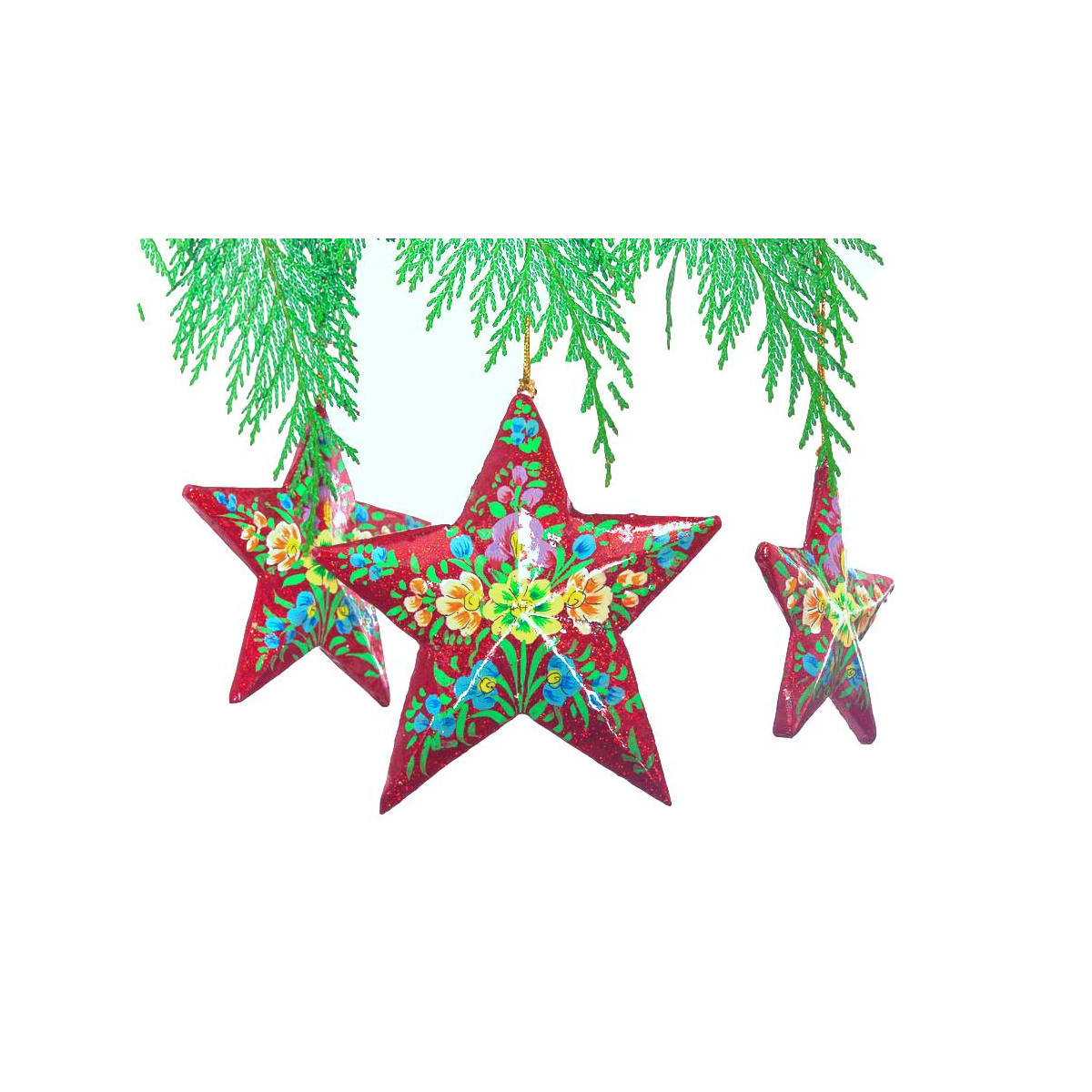 Déco à suspendre en forme d'étoile, rouge peinte à la main, à paillettes, motif fleurs