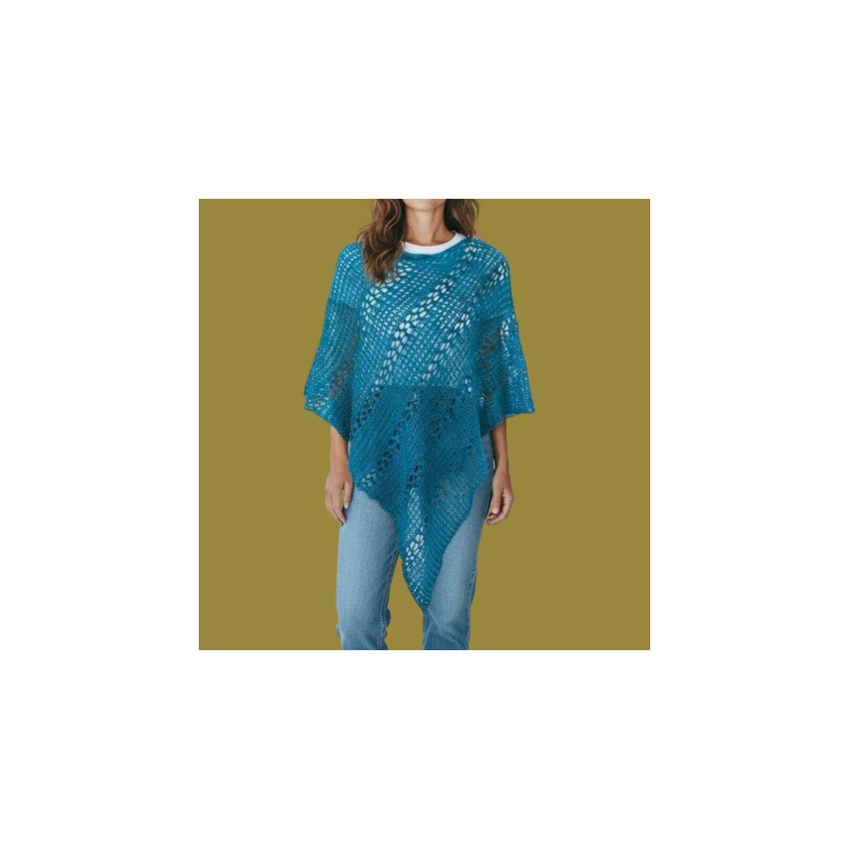 Adoptez un style chic et aérien avec ce poncho bleu canard finement ajouré, confectionné dans une maille douce et légère.