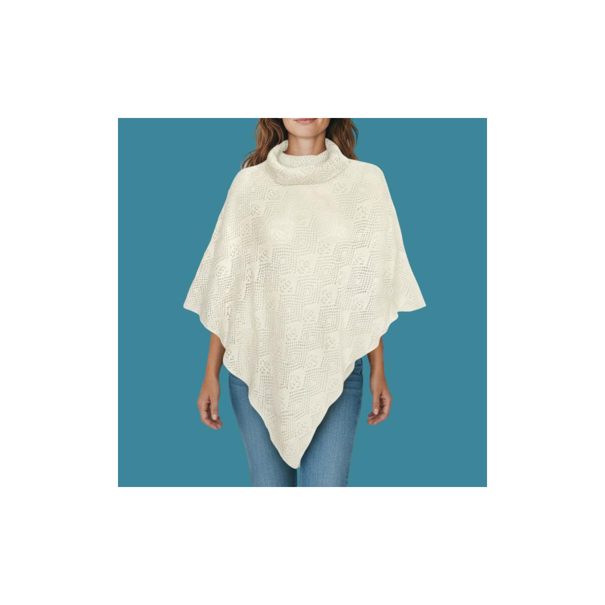 Apportez une touche d’élégance et de chaleur à votre tenue avec ce  poncho en laine à motifs ajourés écru.