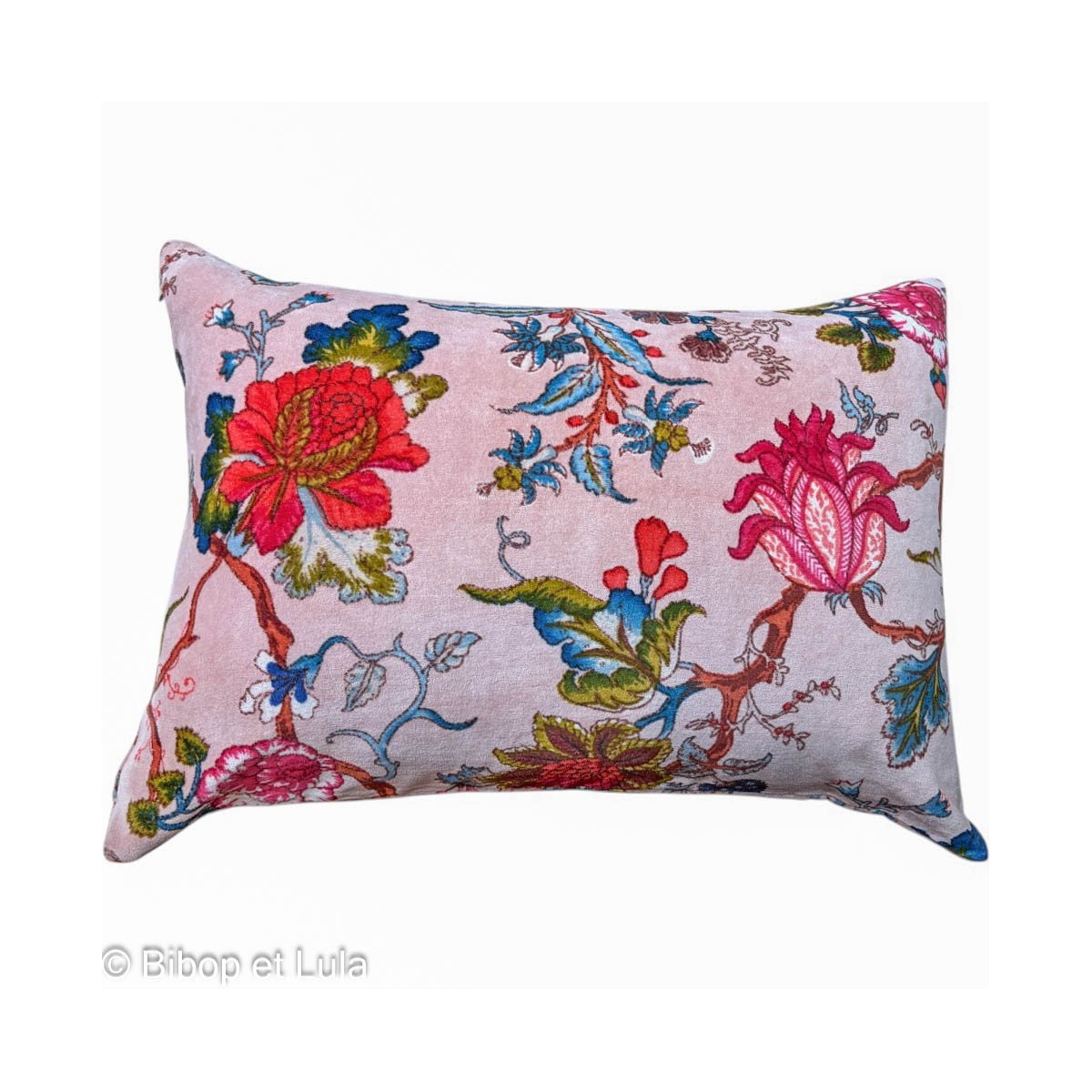 Apportez une touche d’élégance et de chaleur à votre intérieur avec cette magnifique housse de coussin rectangle en velours rose imprimé Anjali