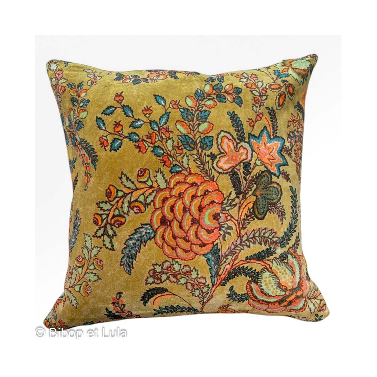Apportez une touche d’élégance et de chaleur à votre intérieur avec cette magnifique housse de coussin en velours ocre imprimé Camel