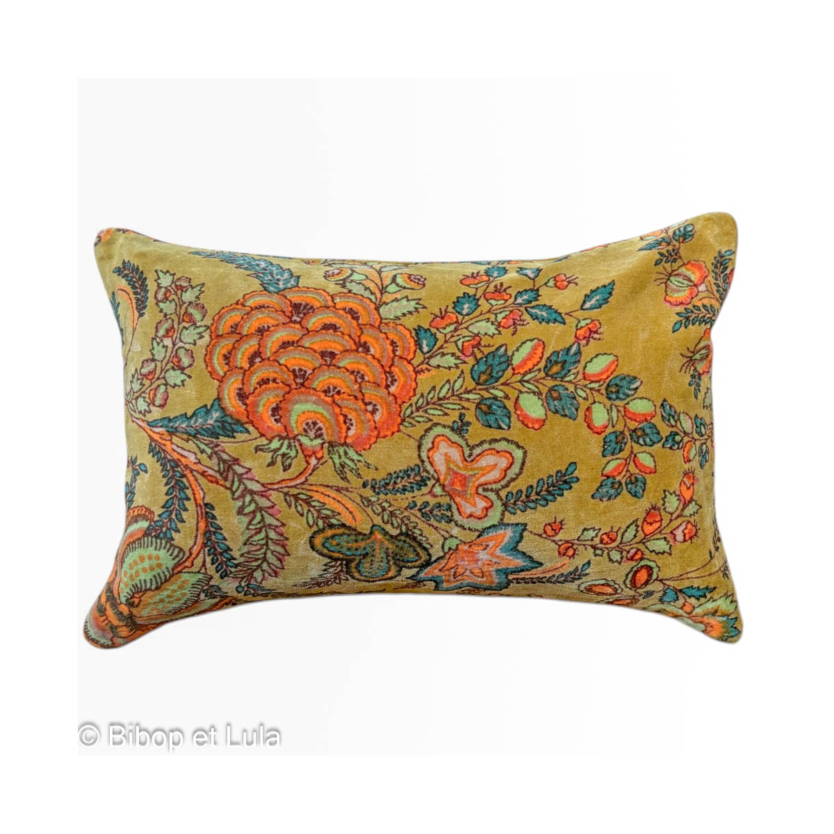 Apportez une touche d’élégance et de chaleur à votre intérieur avec cette magnifique housse de coussin rectangle en velours ocre imprimé Camel