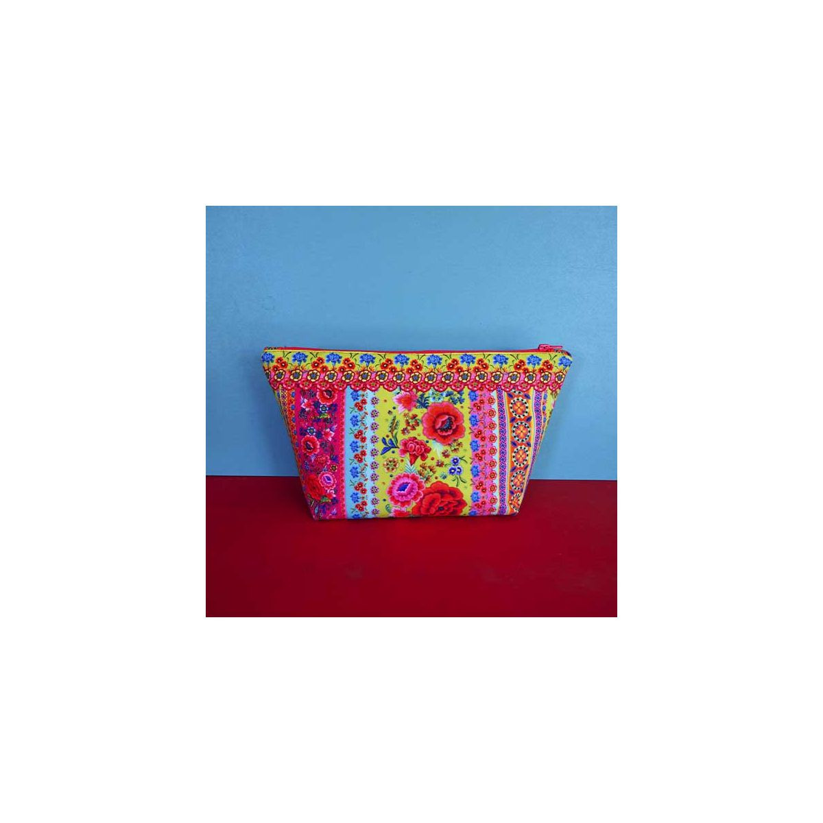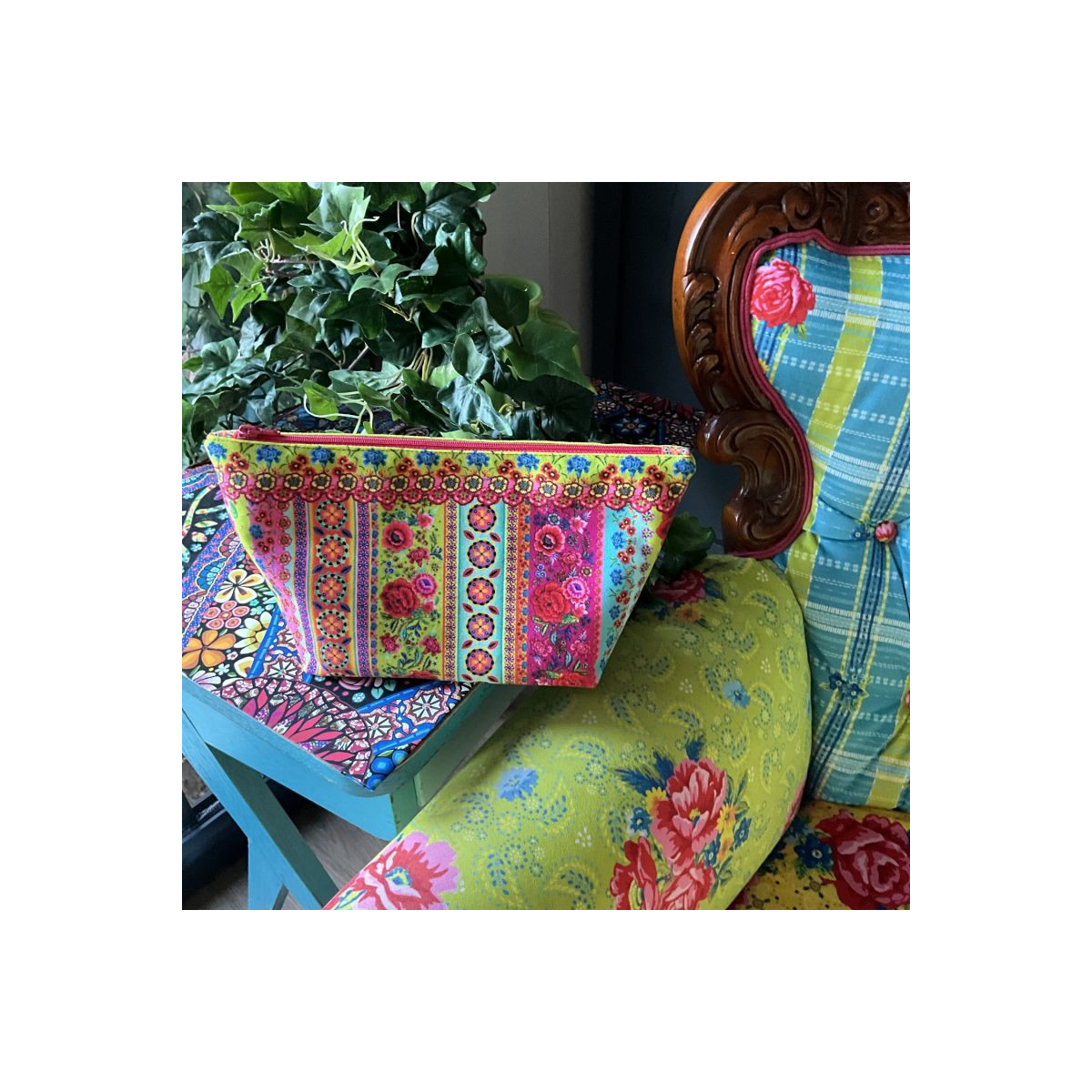 Contenu du kit : velours imprimé, fermeture éclair, molleton, doublure polyester, tutoriel.