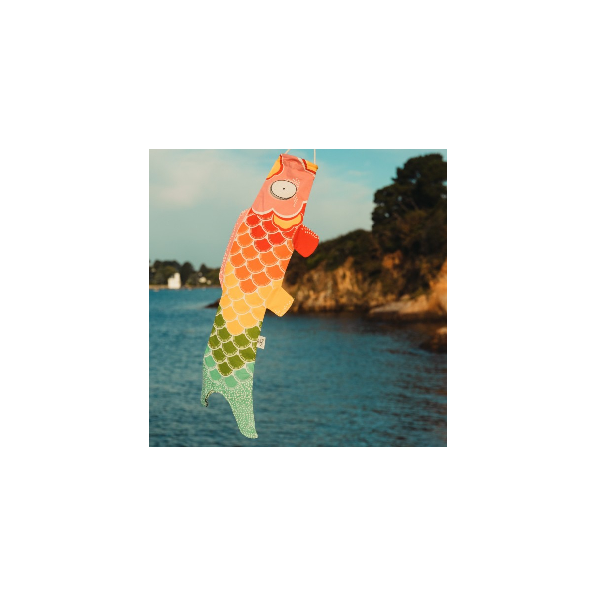 En quête d'une décoration lumineuse, poétique et distinctive, capable de vous transporter sans quitter votre intérieur ? Vous êtes au bon endroit ! Ajoutez une touche exotique et tendance à votre décoration avec nos koinobori. Ces cerfs-volants colorés, inspirés de la carpe japonaise, capturent la sensation de poisson nageant au vent. Un formidable cadeau de naissance éthique et chic.