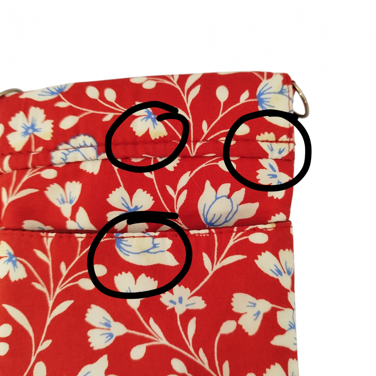 Pochette bandoulière téléphone rouge imprimé d'un motif floral blanc