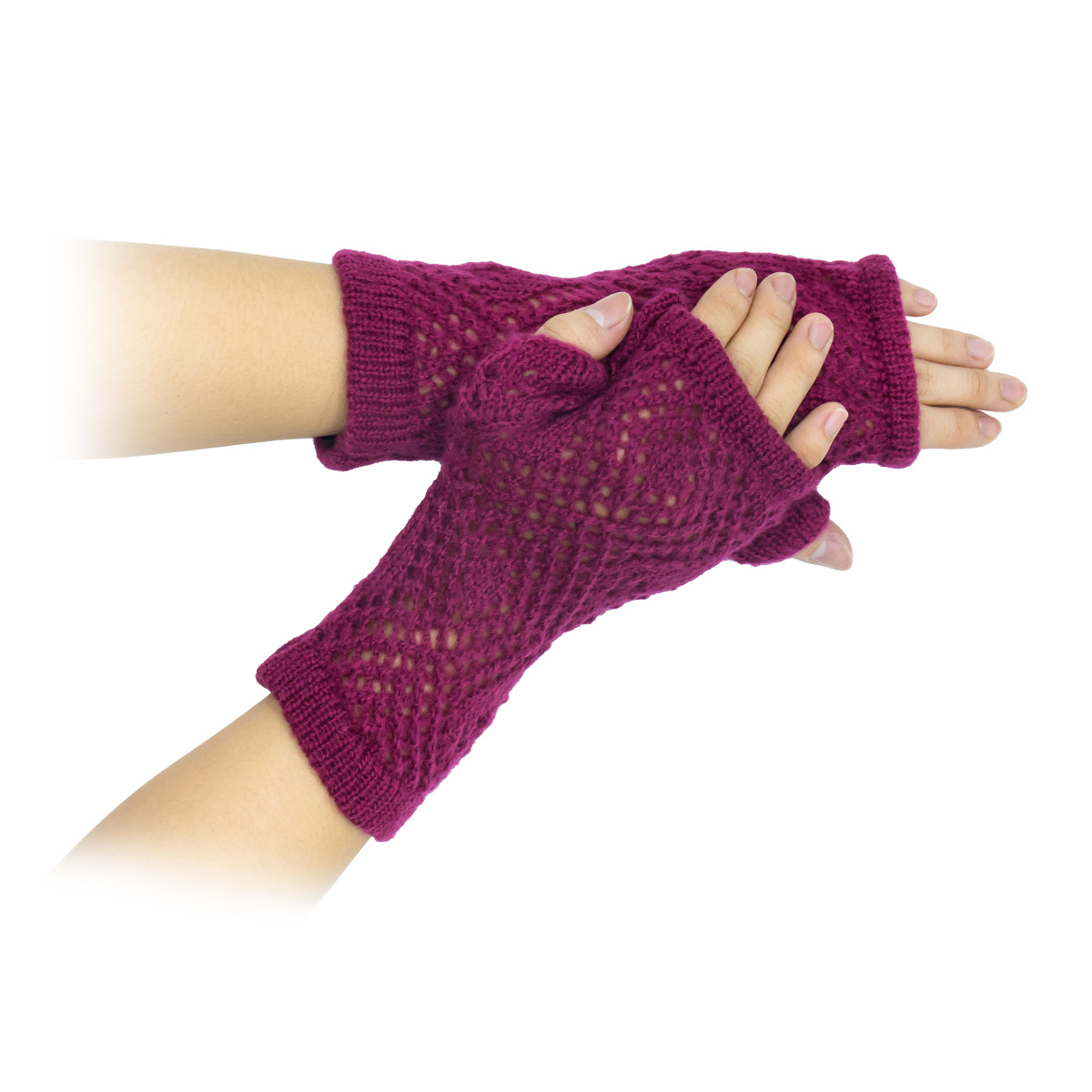 Alliez chaleur et élégance avec ces mitaines ajourées en laine. Leur maille tricotée laisse apparaître un joli motif léger et raffiné, tout en gardant vos mains bien au chaud. Grâce à leur style sobre et moderne en prune, elles s’accordent facilement avec toutes vos tenues.