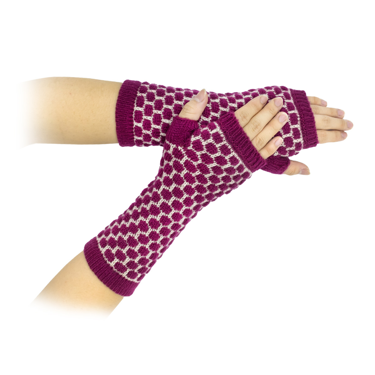 Optez pour chaleur et originalité avec ces mitaines au motif nid d’abeilles. Tricotées en prune et blanc, elles apportent une touche graphique et moderne à vos tenues hivernales. Leur design sans doigts permet de garder les mains au chaud tout en conservant une liberté de mouvement idéale pour écrire, conduire ou utiliser un smartphone.