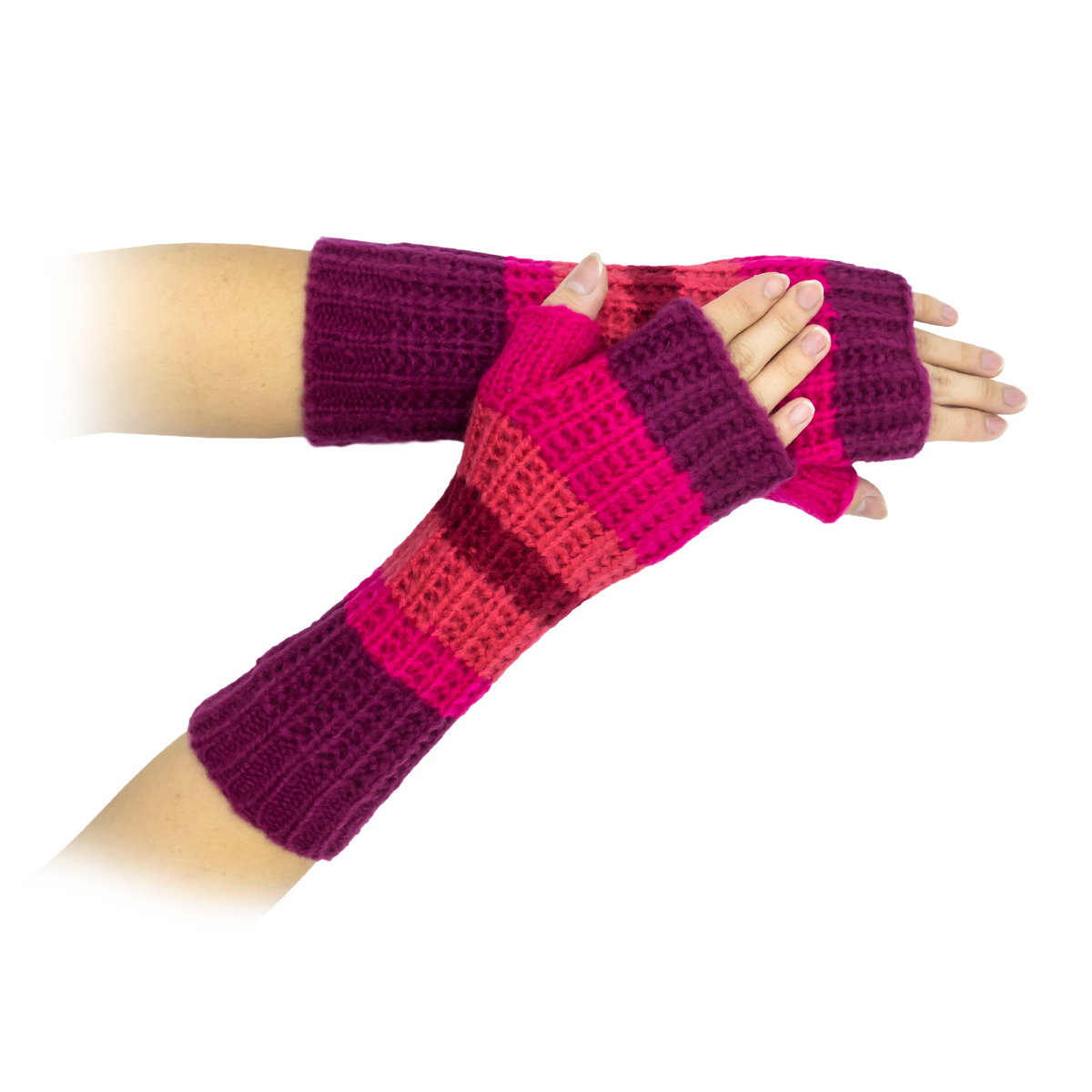 Apportez une touche de couleur et de chaleur à vos journées d’hiver avec ces mitaines rayées en laine. Leur tricot épais alterne des bandes de prune, rose et orange, pour un style dynamique et moderne.