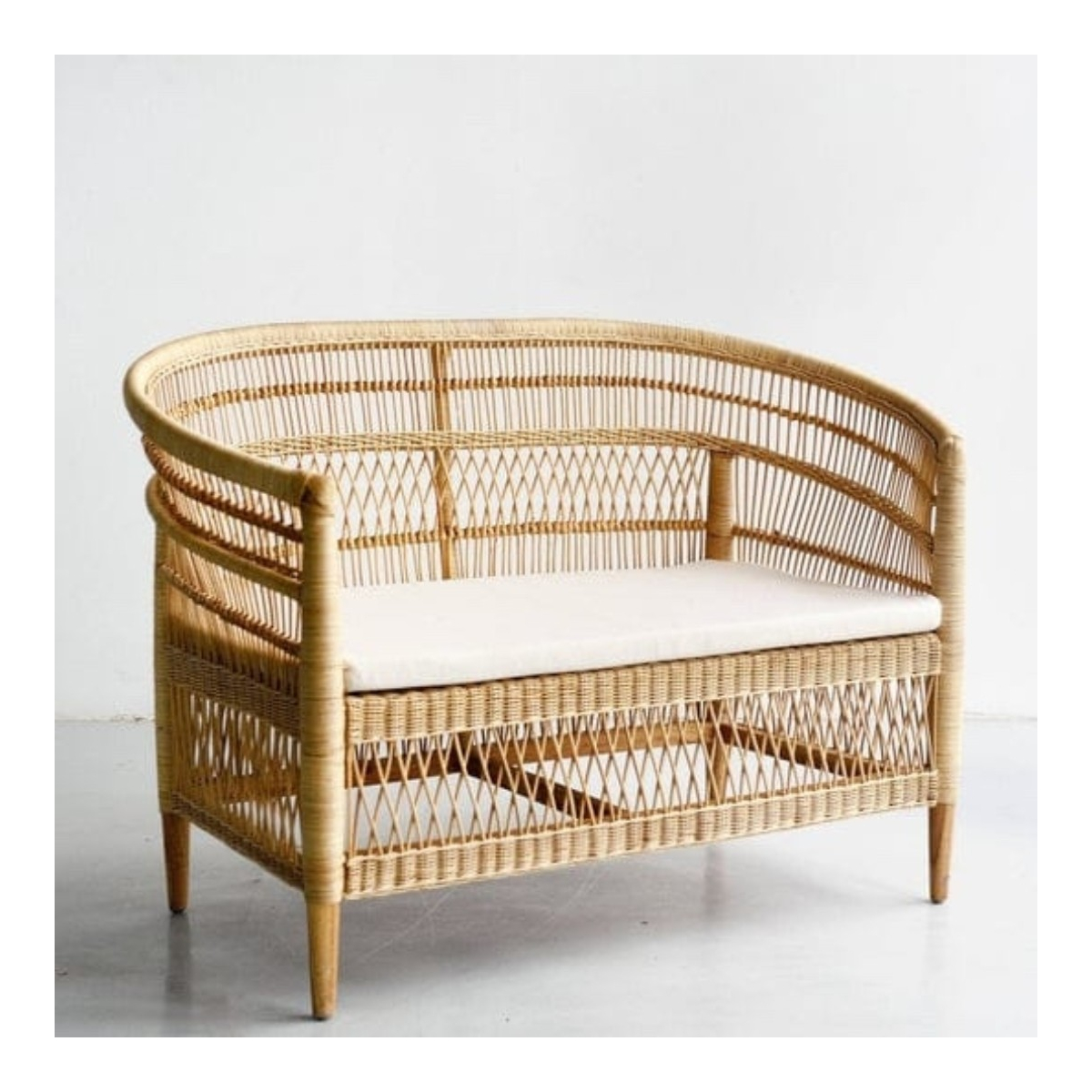 Entièrement fabriquée à la main sur l’île de Java en Indonésie, elle combine l’élégance d’un rotin tressé artisanal et le confort d’une assise généreuse.