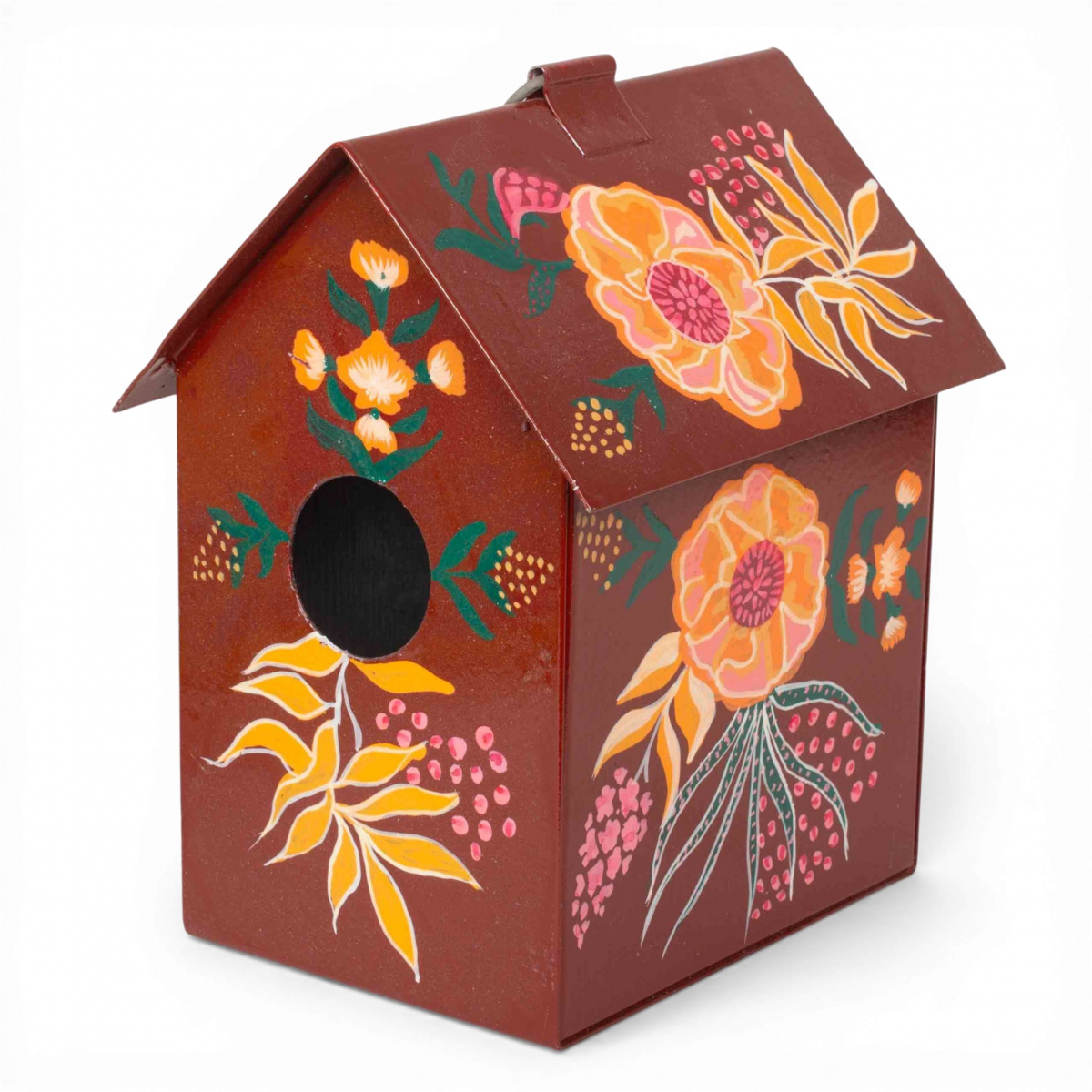 Donnez une touche de charme à votre espace extérieur avec notre nichoir Mandi, peint à la main dans un fond brun avec des motifs de fleurs orangées. Accrochez ce nichoir à un endroit ensoleillé de votre jardin et profitez du spectacle des oiseaux qui y feront leur nid. Résistant aux intempéries, ce nichoir offre une touche décorative à votre jardin.
