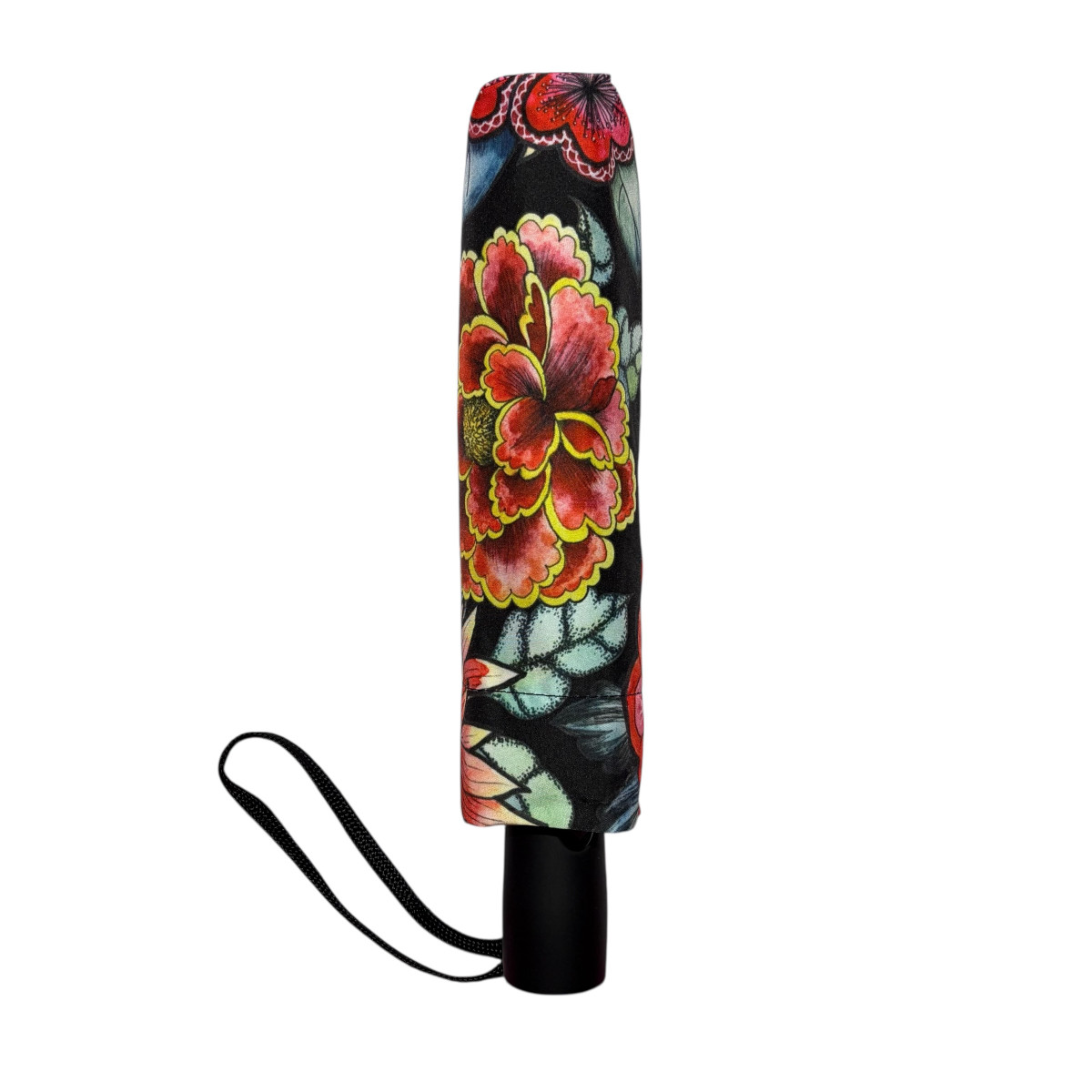 Ce motif joue le contraste ultra chic d’un fond noir profond qui fait ressortir un jardin éclatant, comme peint à la main. Son tissu déperlant et imperméable, ainsi que sa conception solide et son bouton d'ouverture automatique assure une utilisation facile et rapide au quotidien. Facile à transporter grâce à son format pliant, il se range rapidement dans sa housse pour protéger vos affaires une fois la pluie passée.