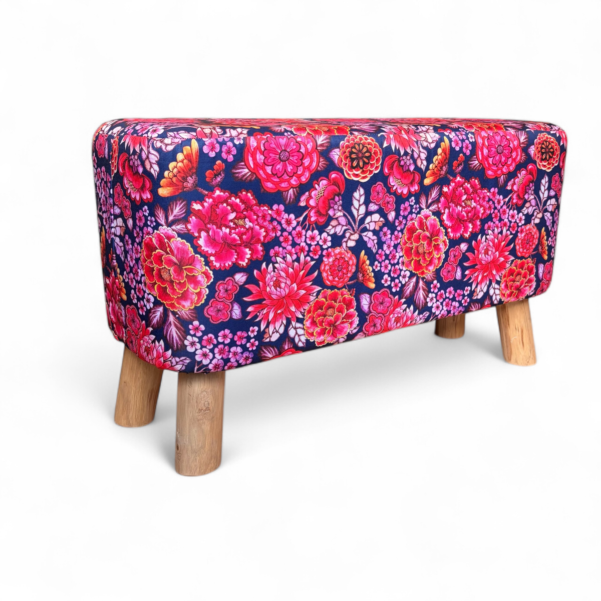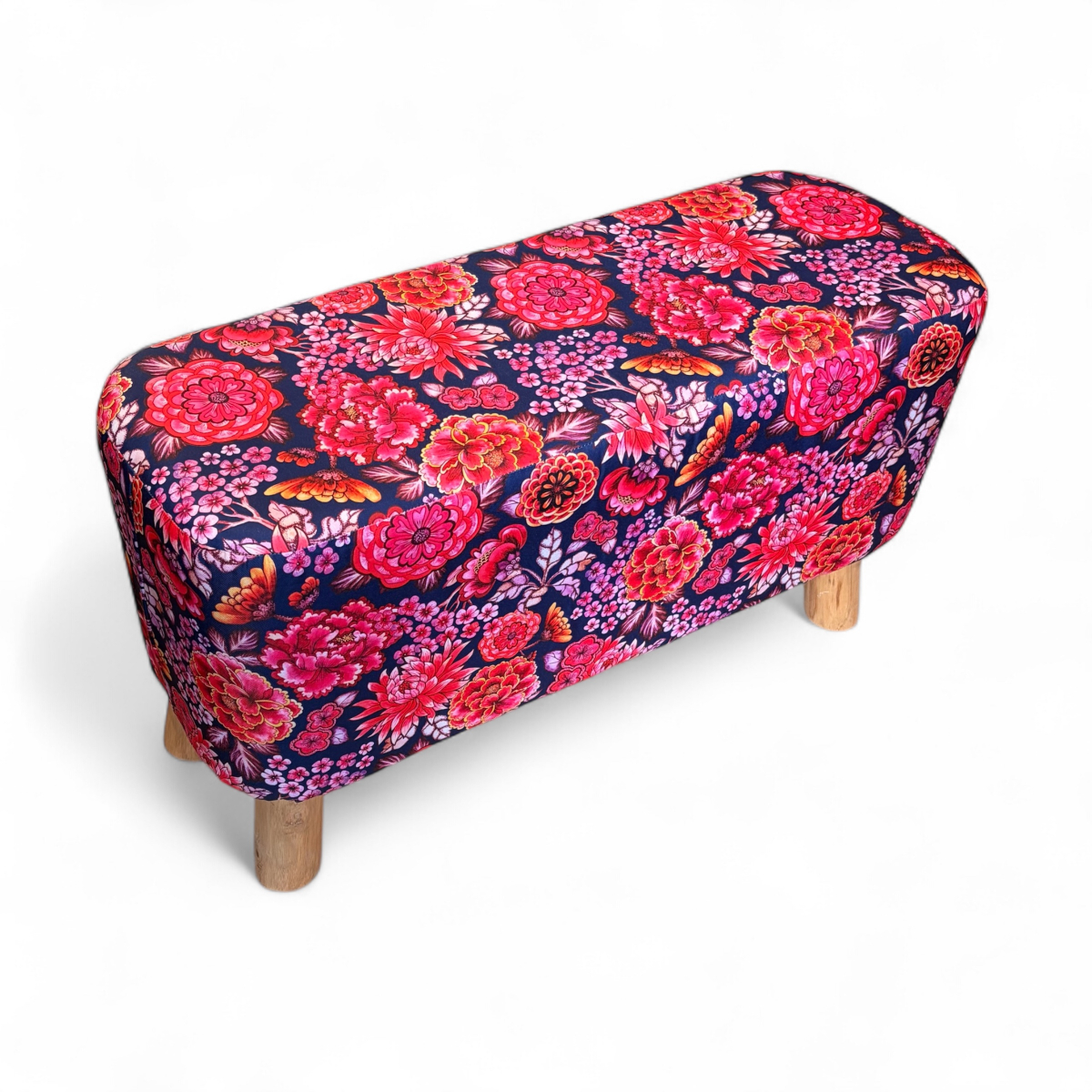 Apportez une touche d’originalité à votre intérieur avec ce banc Bibop et Lula habillé d’un tissu fleuri signé Odile Bailloeul. Ses motifs éclatants et son design chaleureux feront sensation dans votre entrée, votre salon ou au bout du lit.