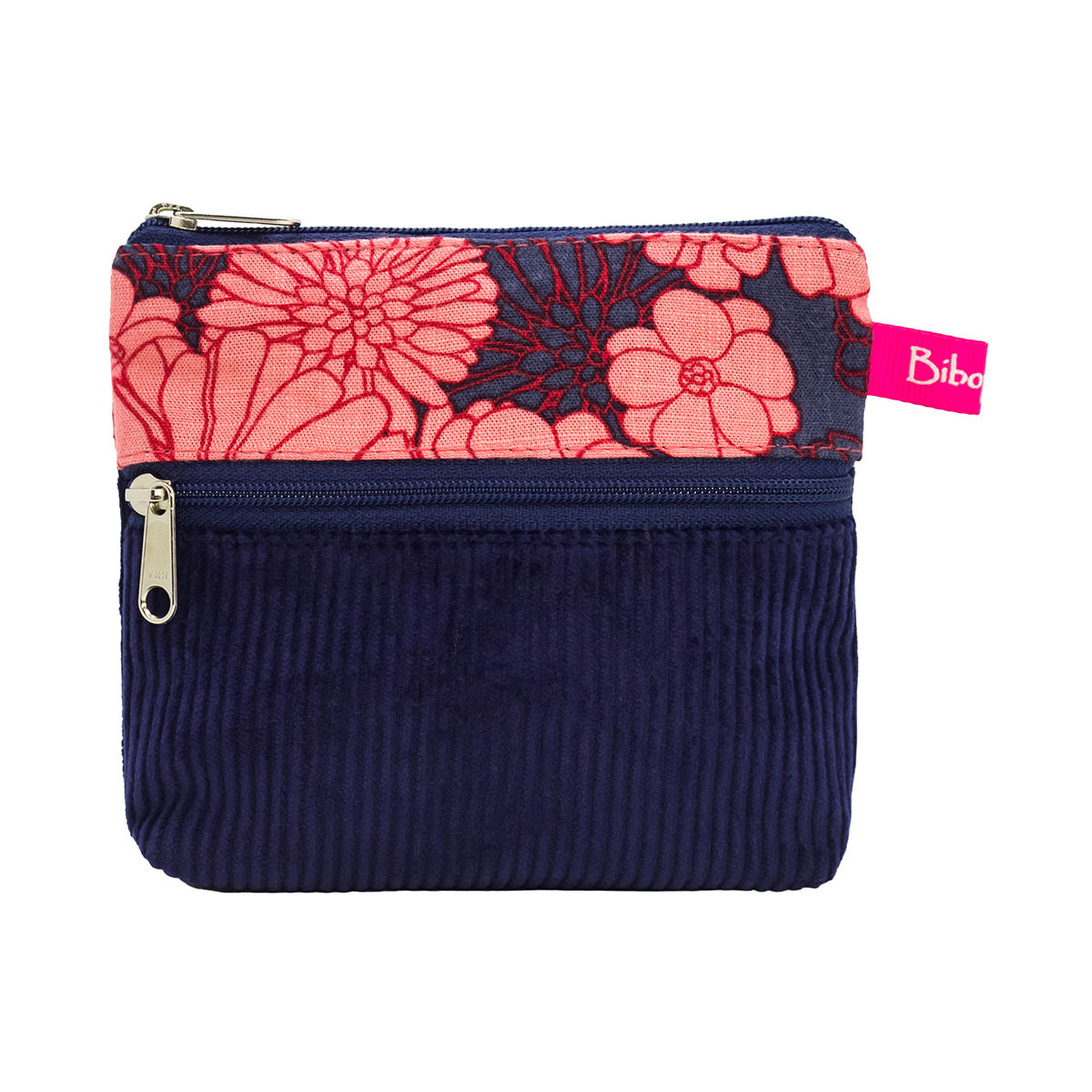Compact et ultra pratique, ce porte-monnaie Coralia en coton imprimé fleuri et velours côtelé offre deux compartiments zippés pour mieux organiser monnaie, billets ou petits objets.