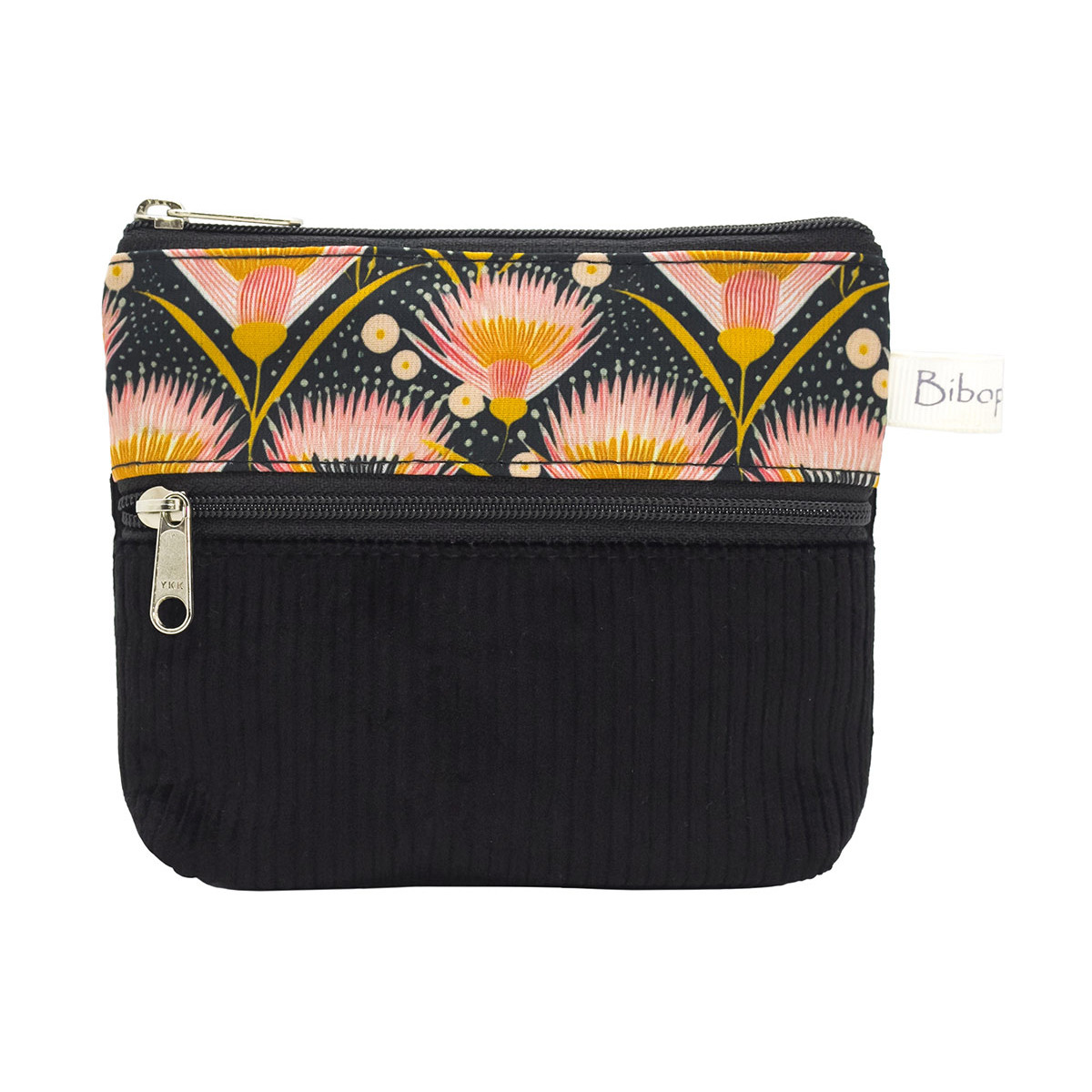 Compact et ultra pratique, ce porte-monnaie Papyrus en coton imprimé fleuri et velours côtelé offre deux compartiments zippés pour mieux organiser monnaie, billets ou petits objets.
