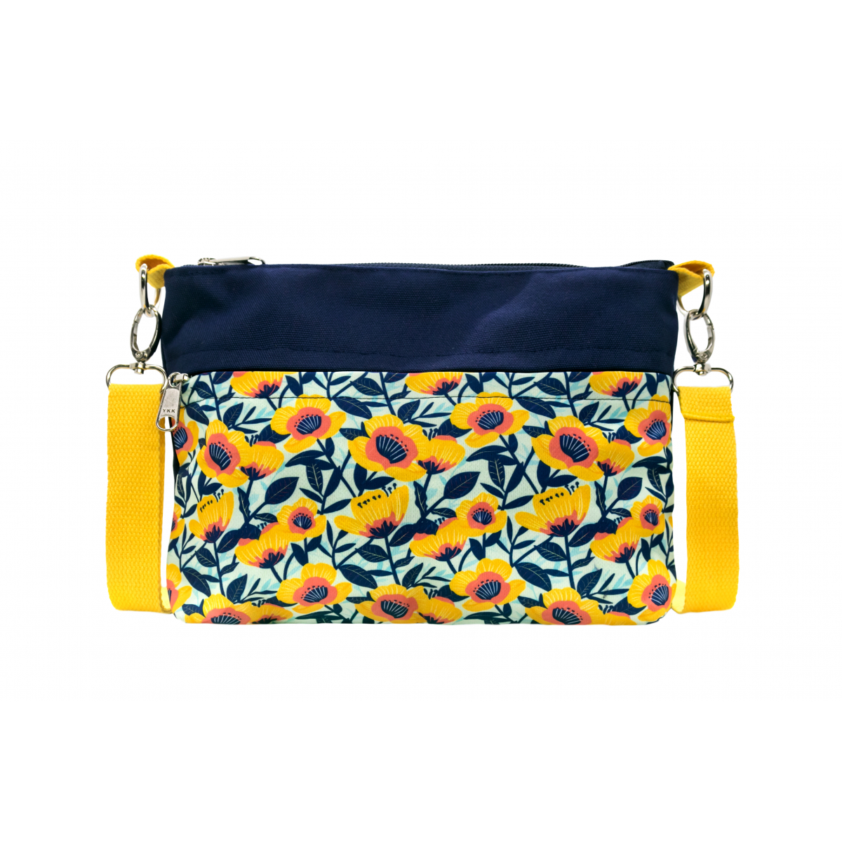 Optez pour un style unique et pratique avec ce sac bandoulière en toile et tissu imprimé Soléa. Son format compact et léger en fait le compagnon idéal de vos journées actives. L’avant présente un tissu coloré et fleuri qui apporte une touche de fantaisie, tandis que le dos en toile unie assure sobriété et solidité.