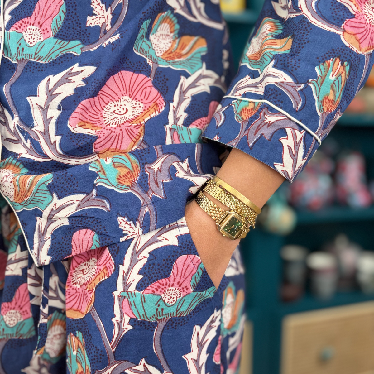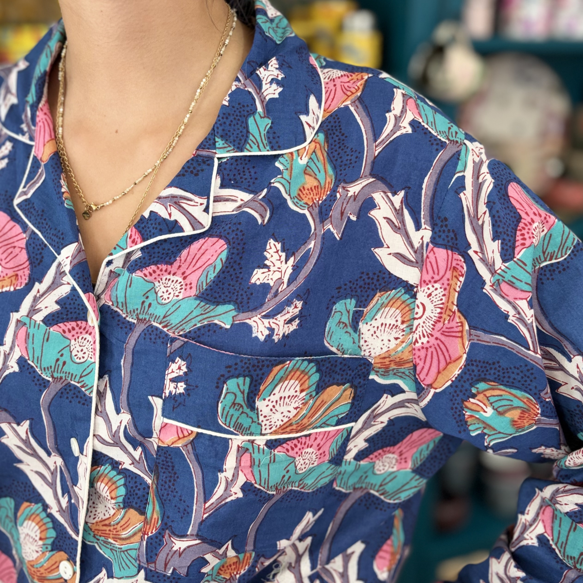 Chaque motif est imprimé à la main selon la technique artisanale du block print, ce qui rend chaque pièce unique.